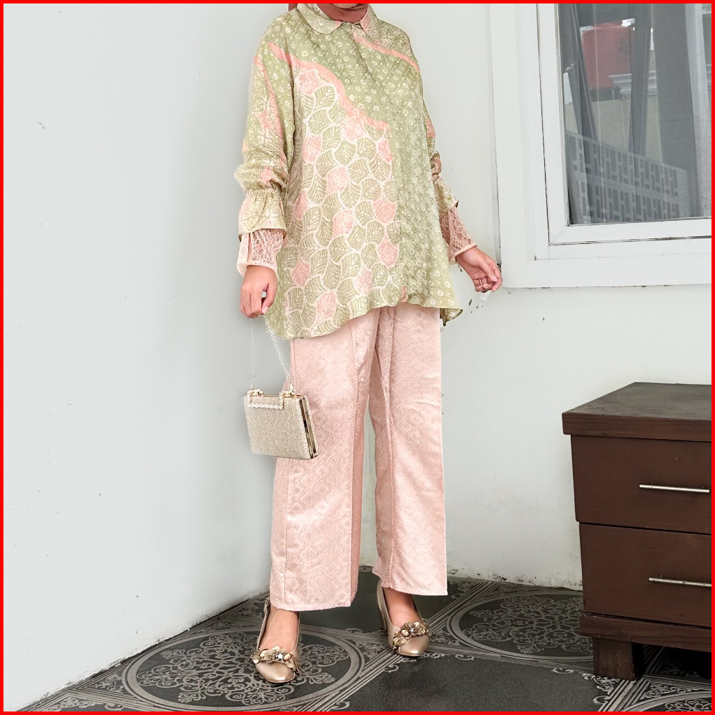 Zara Set Blouse Dan Celana Batik Modern Viscose Kondangan Kantor Busui Friendly