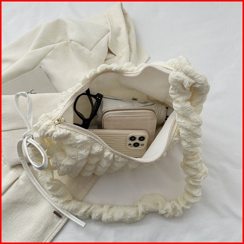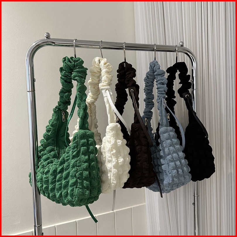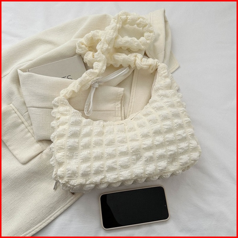 Tissa Shoulderbag Tas Bahu Viral Vintage Bubble Grid Tas Bahu Puffy Cloud Pleat Bag Outfit Konser Korean Fashion Wanita