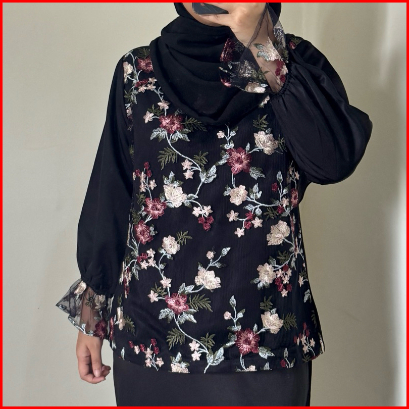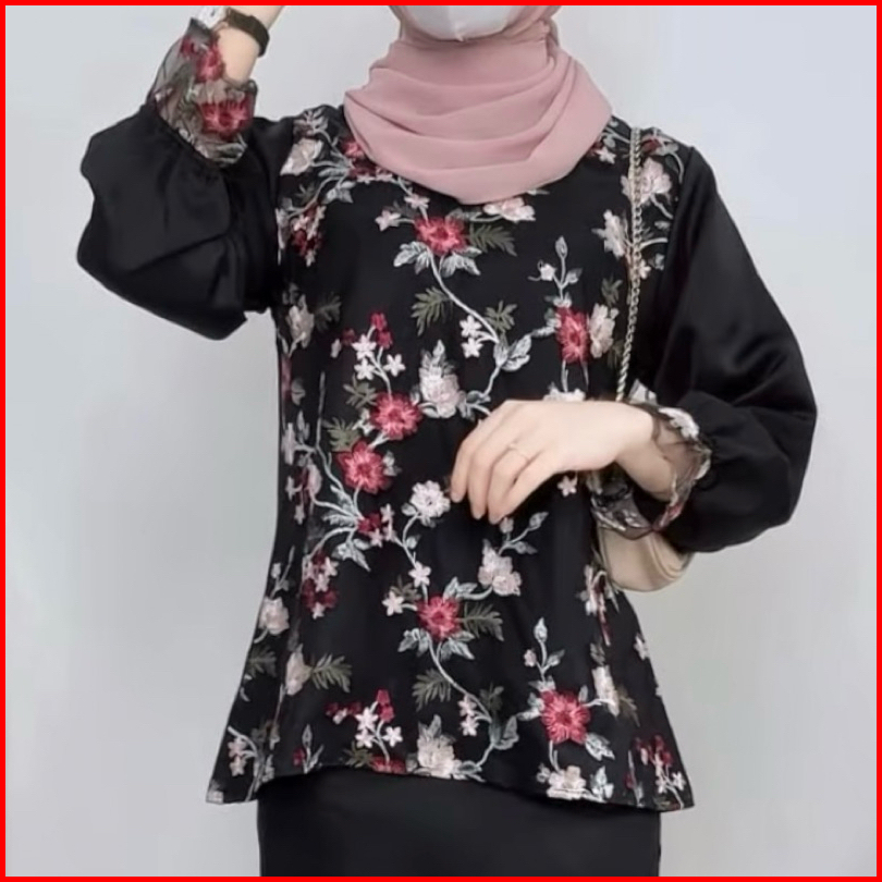 Amara Blouse Blouse Tile Garden Blouse Brukat Atasan Wanita Motif Bunga Baju Kondangan Brukat Kondangan