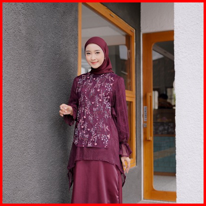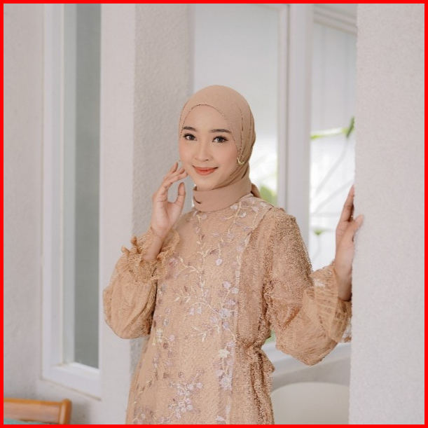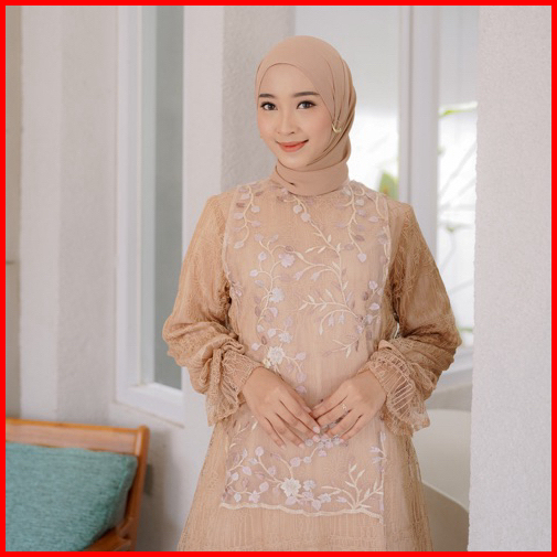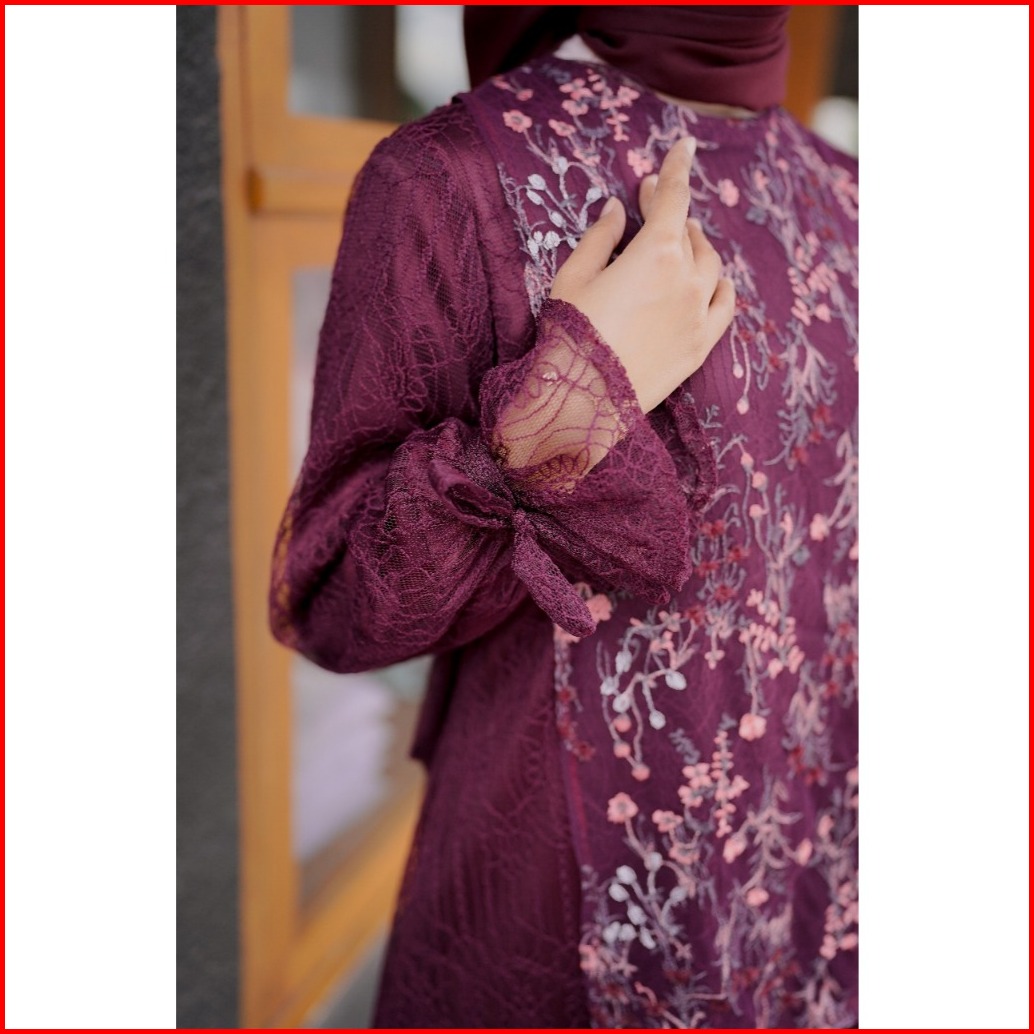 Delova Wardrobe - Gamis Aruna Brukat Dress Bordir Outfit Modern Lace Embroidery Brocade Garden Lebaran Idul Fitri Muslim