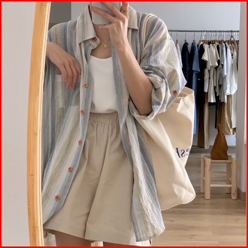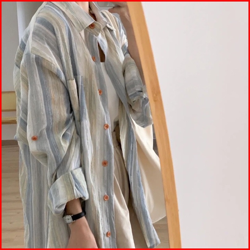 Kiwi Twice Kemeja Wanita Garis Korean Style Oversize Kemeja