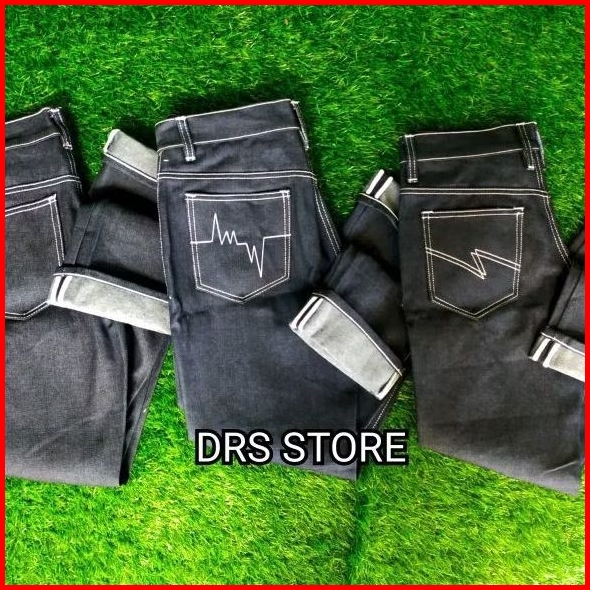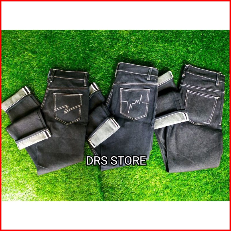 Celana Denim Selvedge Accent 15 Oz Black Indigo Bahan Raw Denim Bisa Feding