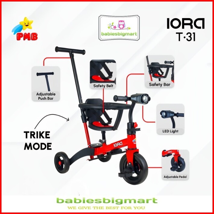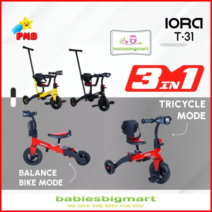 Sepeda Anak Roda Tiga Pmb Iora T 31 Balance Bike 6 In 1 Dorong Stir