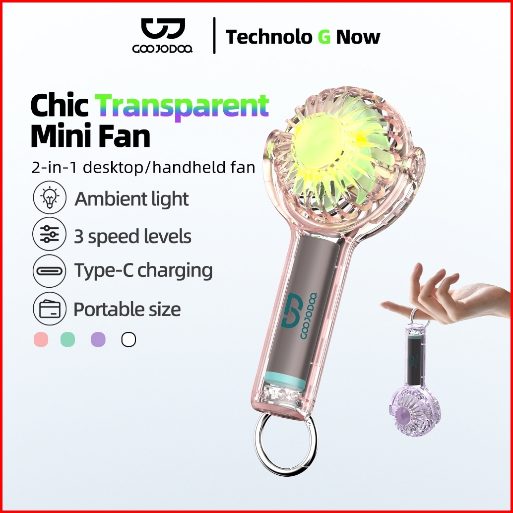 Goojodoq 3000mah Kipas Angin Akrilik Transparan 330 Rotatable Kipas Mini Genggam Cute Kipas Lipat Portable Mini Fan