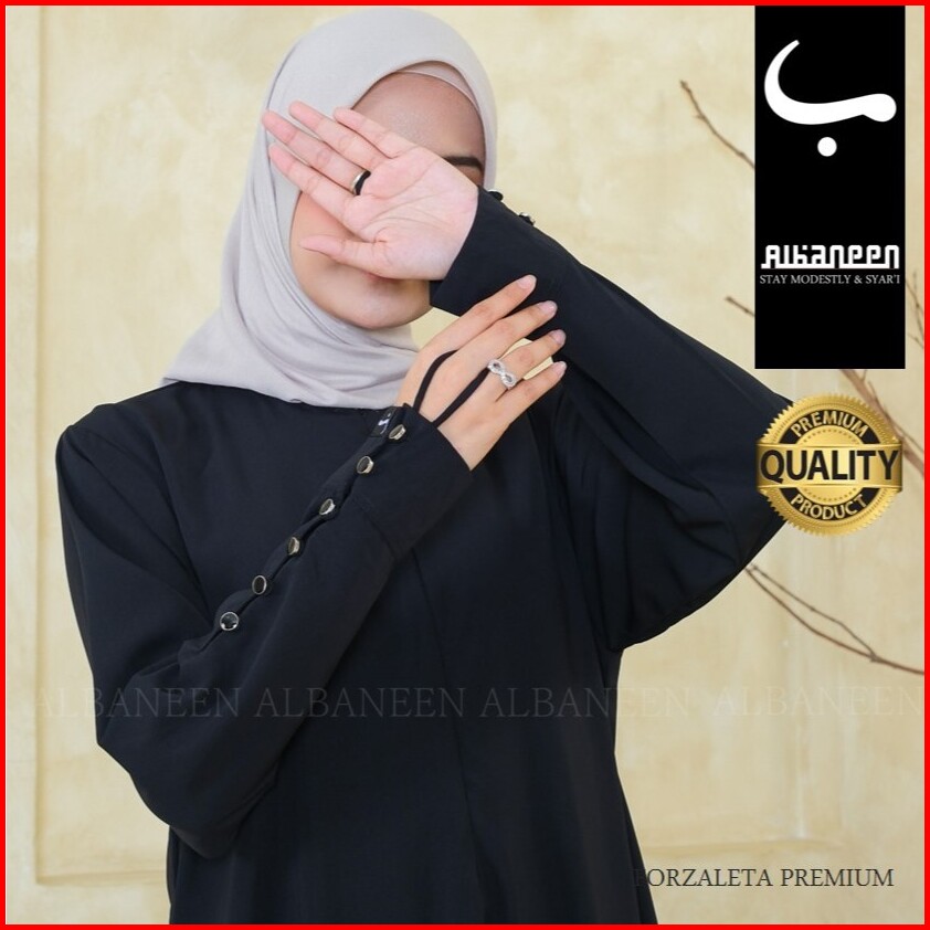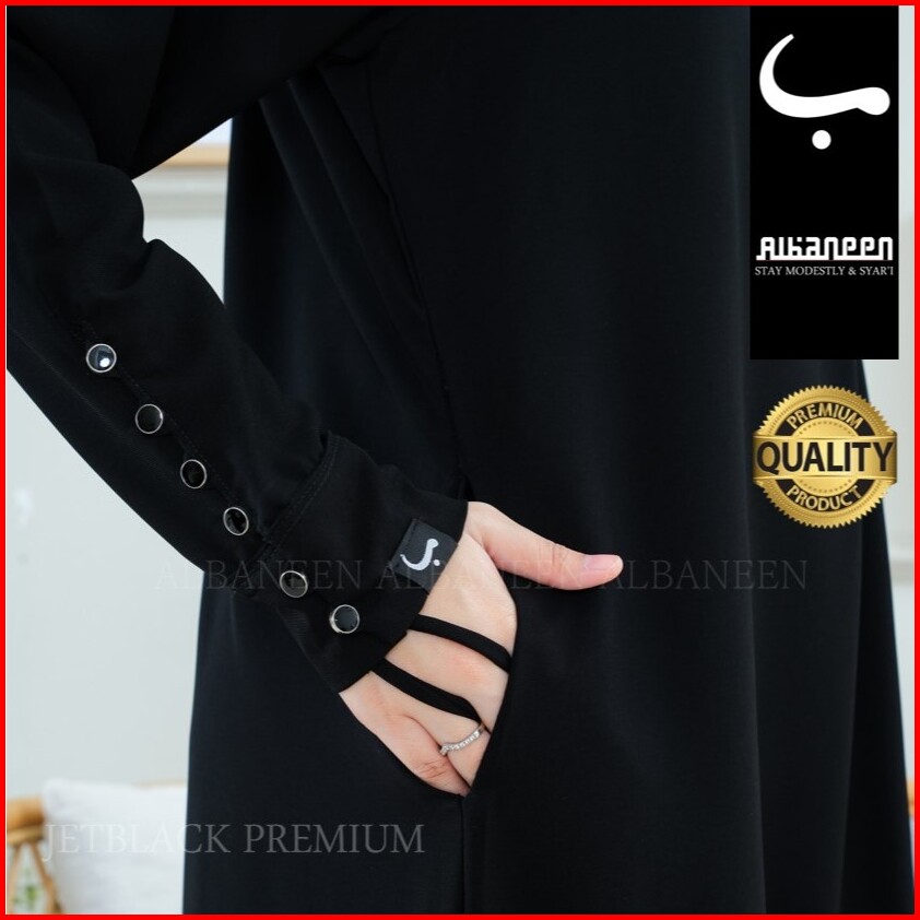 Baru Albaneen.syari Abaya Hitam Jetblack Premium Cantik Gamis Umroh Anti Uv Hitam Mewah Polos Kancing Tangan Bahan Jet B