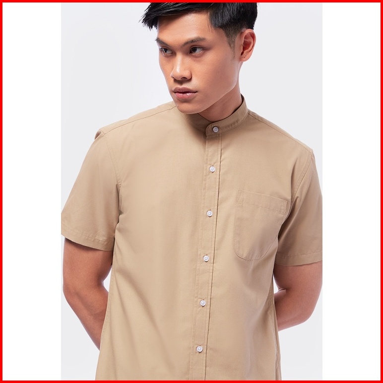 Executive Stand Up Collar Short Sleeve Shirt Khaki