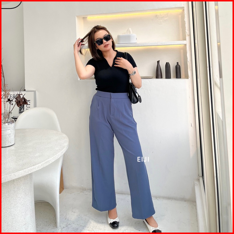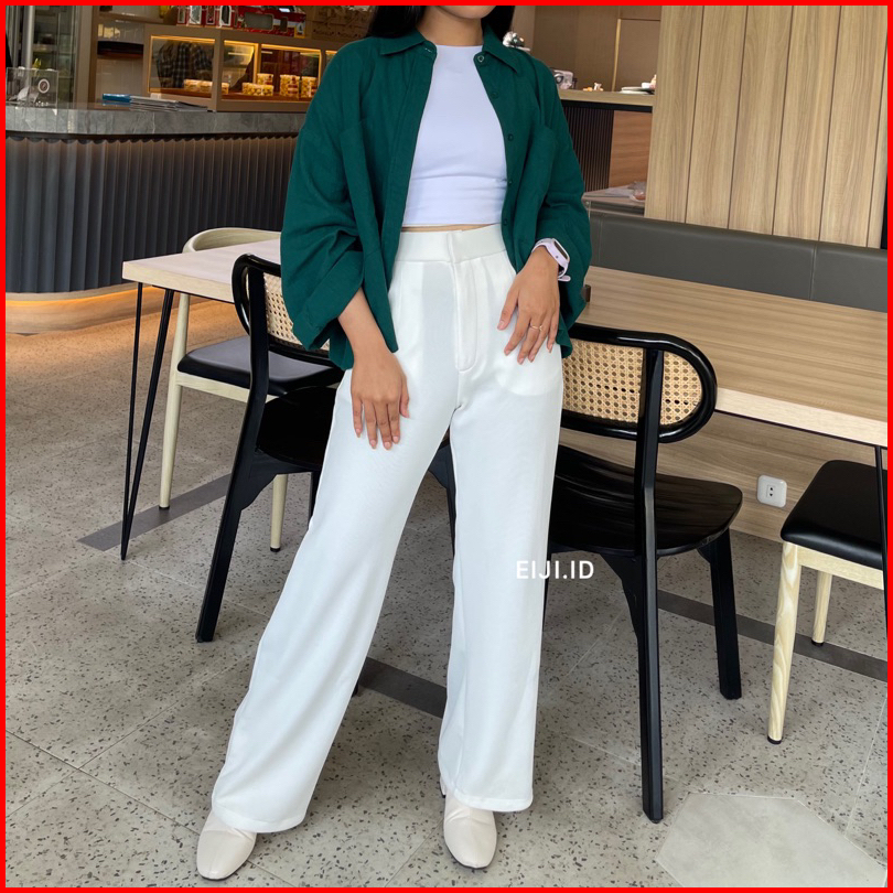 Cozie Pants Ukuran Besar Big Size Jumbo Knit Pants - Celana Highwaist Panjang Wanita Kulot Rib Anti Kusut - Celana Outfi