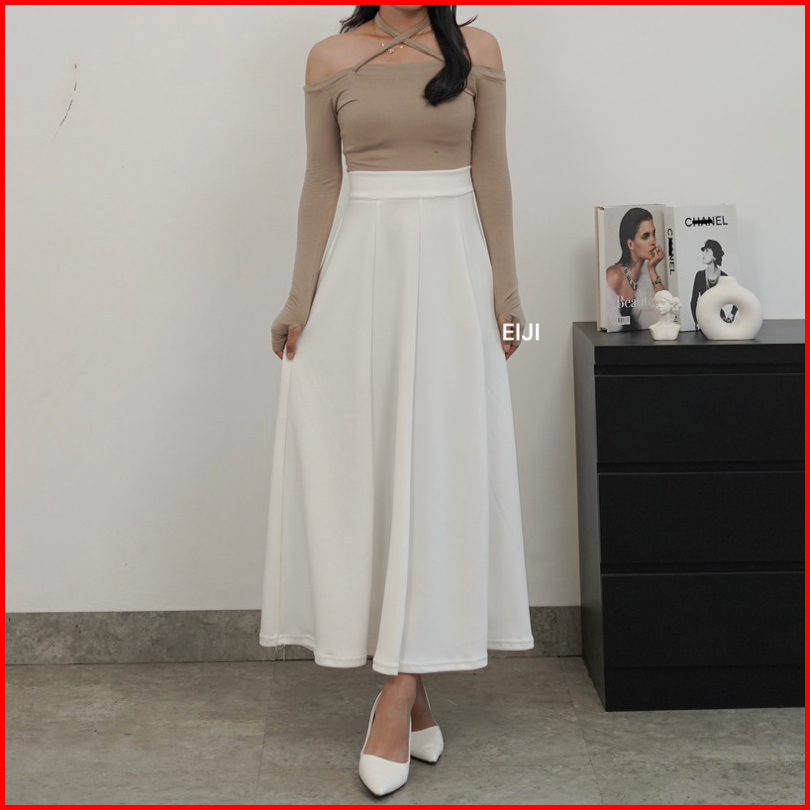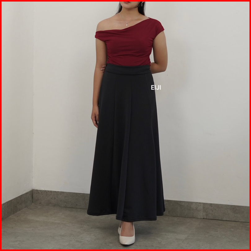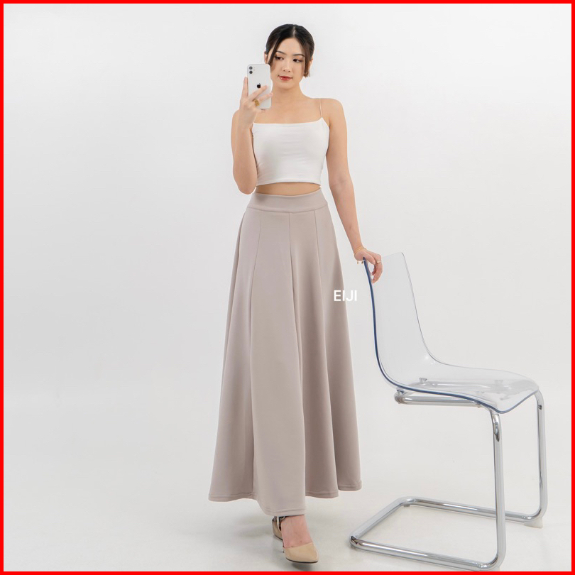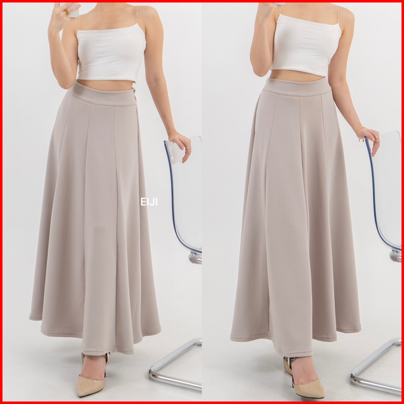 Eiji - Audy Skirt - Korean Loose Maxi Skirt Rok Wanita Anti Kusut Polyester - Rok Flare Scuba Wanita - Rok Basic Polos -