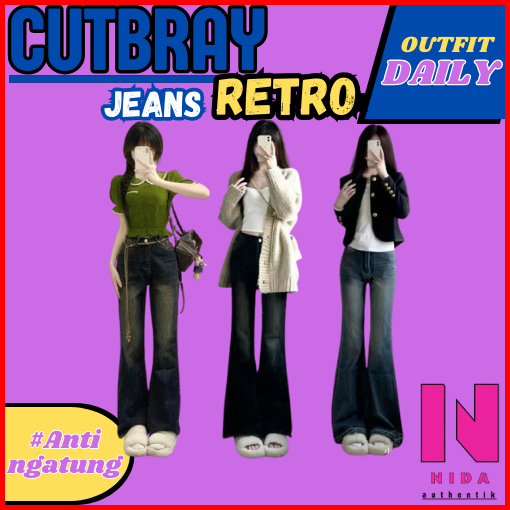Highwaist Cutbray Jeans Retro Wanita-celana Jeans Cutbray Wanita Model Retro Korea Terbaru