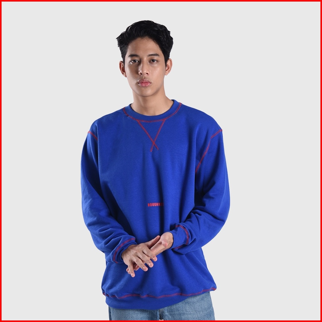 Roughneck Ss449 Blue Contrast Stitch Jaket Crewneck Sweatshirt