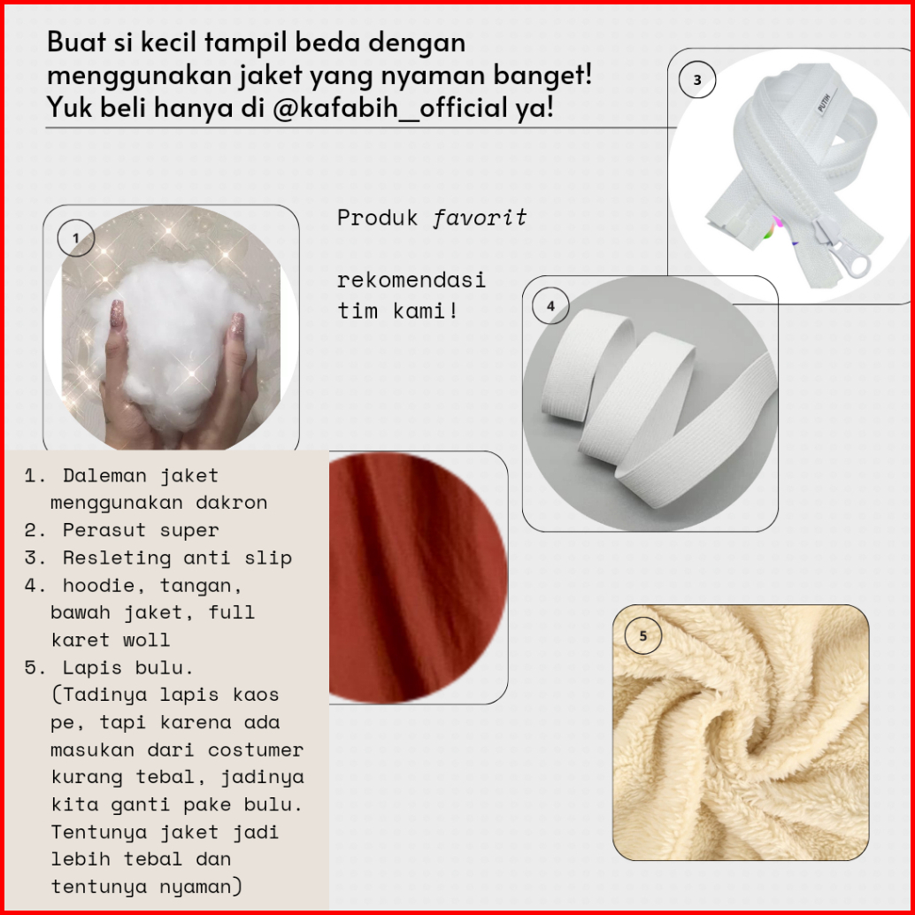 Kafabih Jaket Winter Anak Perempuan Laki Laki Puffer Tosca Terracotta Abu Hitam 1-12 Tahun