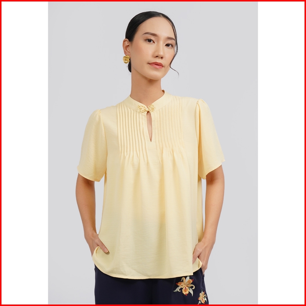 Executive Puff Sleeve Cheongsam Blouse Yellow