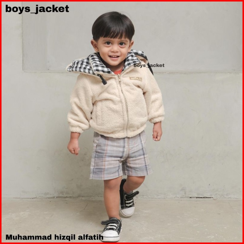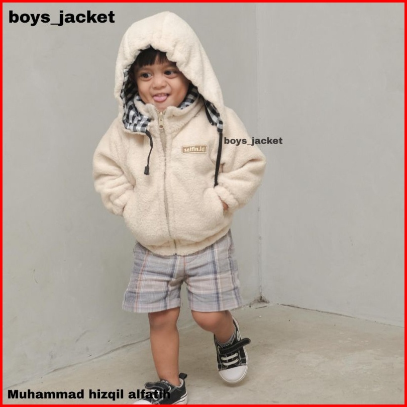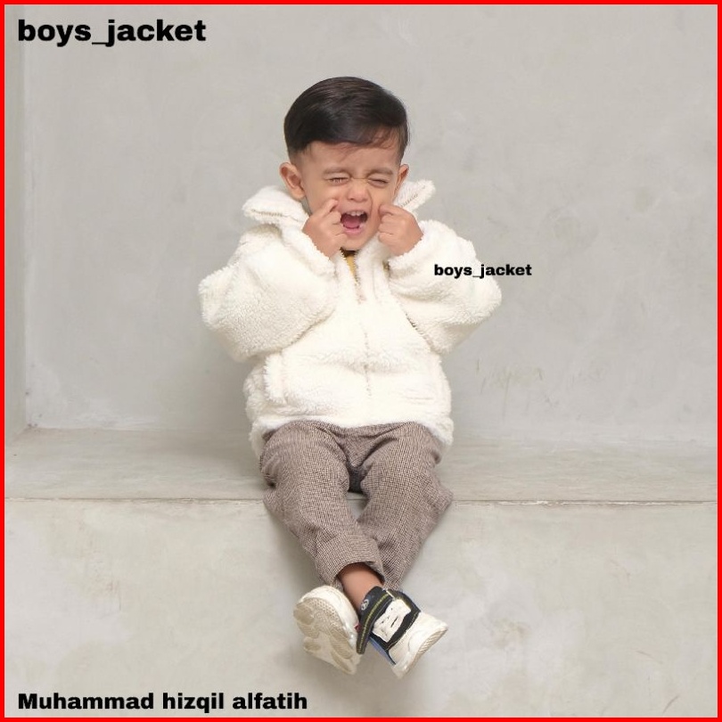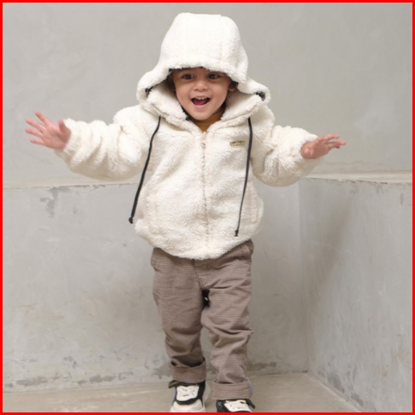 Kafabih Jaket Bulu Anak Laki Laki Hoodie Warna Putih Gading Putih 1-12 Tahun
