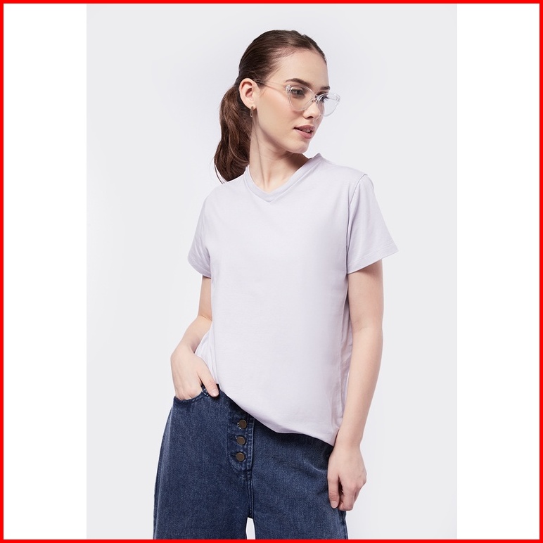 Executive Basic V-neck Cotton T-shirt Soft Purple