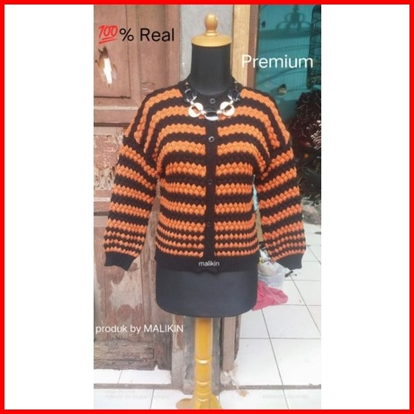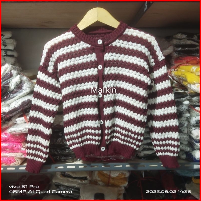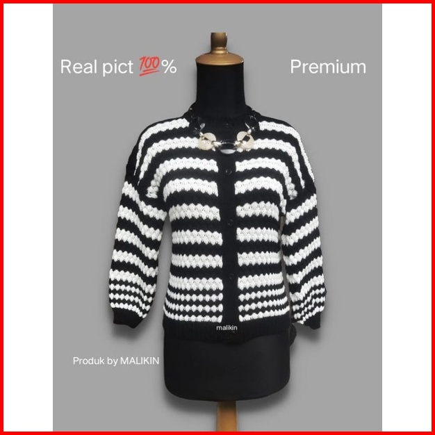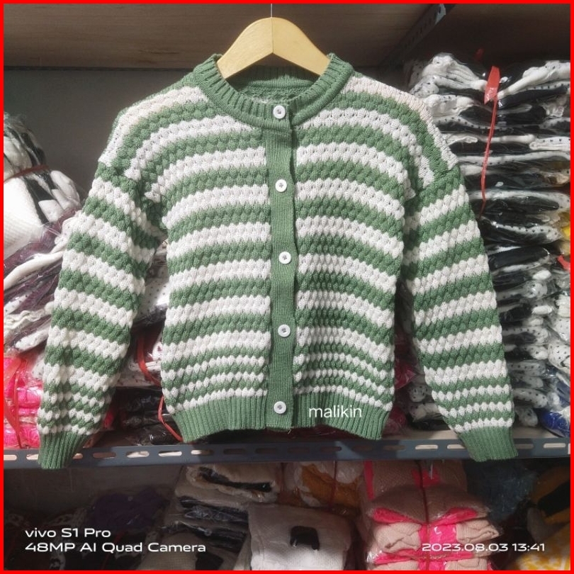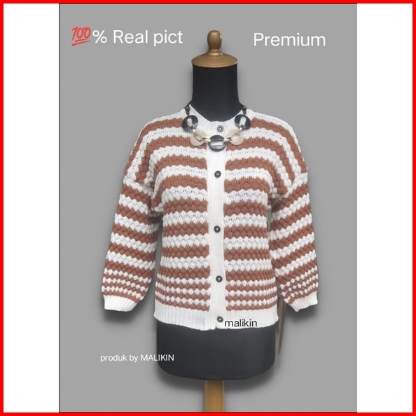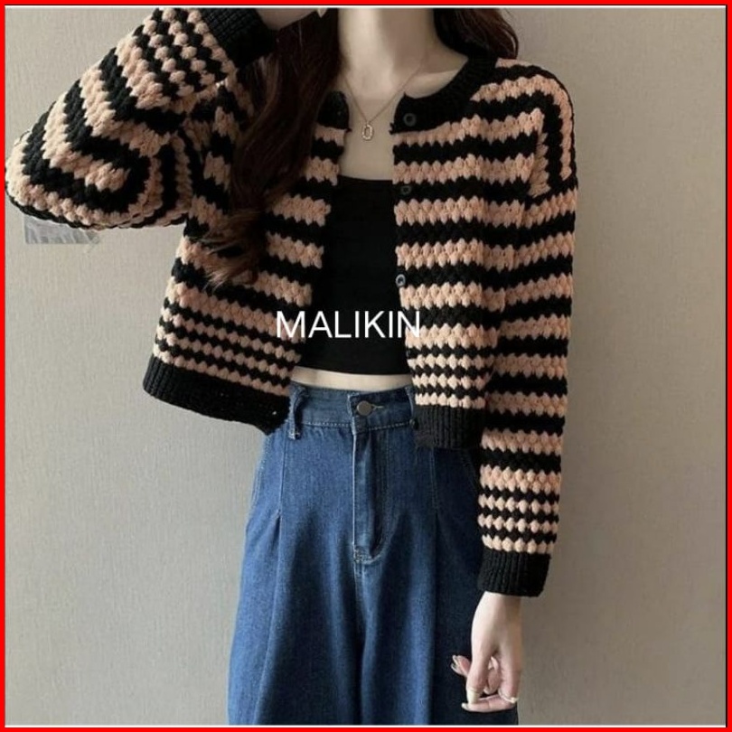 Malikin Cardigan Nanas Stripe Crop Top Crop Top Cardigan Korea Style Cardigan Wanita Rajut