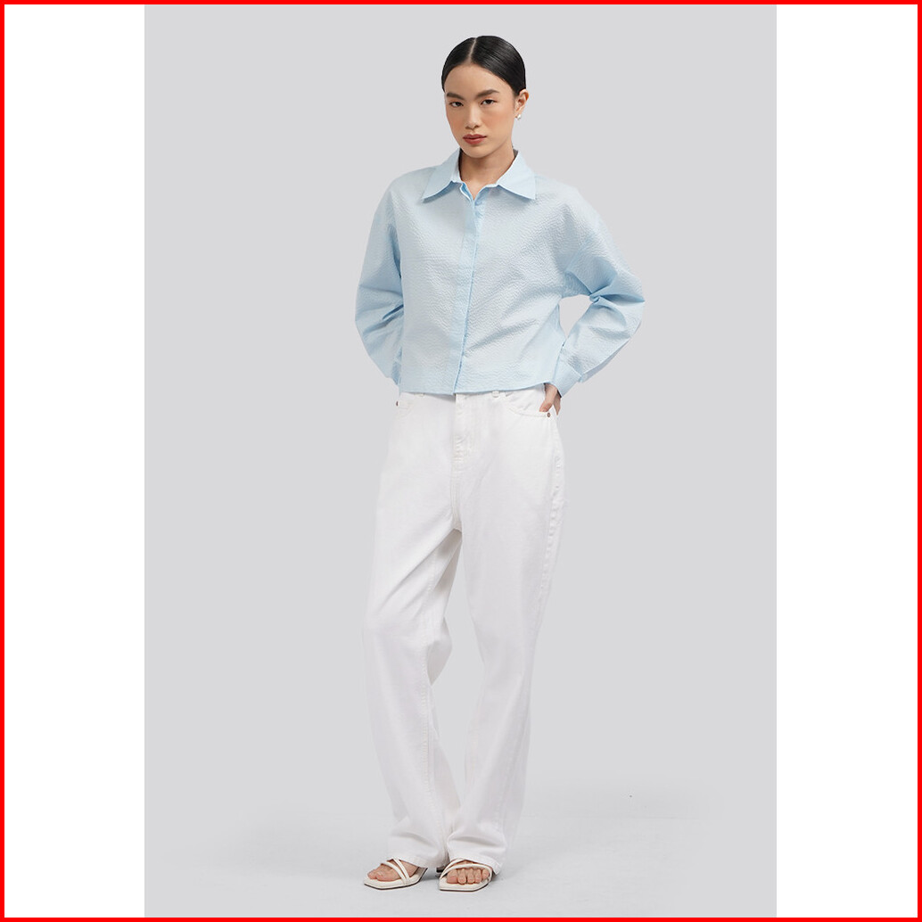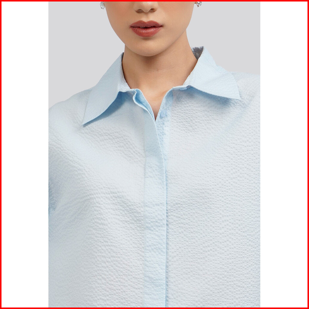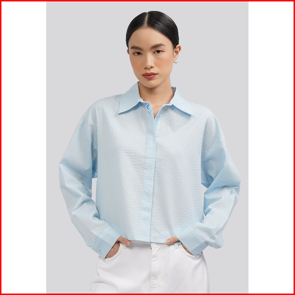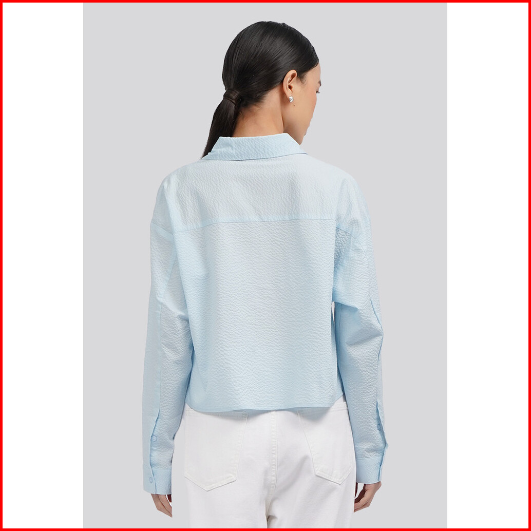 Executive Rippled Long Sleeve Crop Blouse Ice Blue