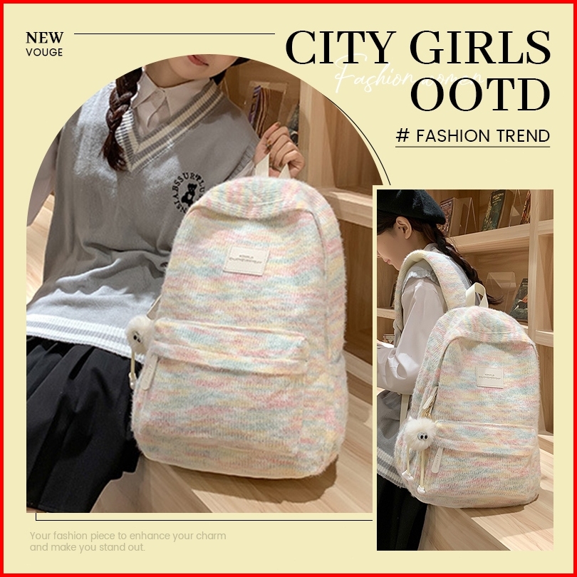 Tas Ransel Pelangi Tas Ransel Pelajar Sma Baru Tas Ransel Mahasiswa Pelangi Mewah Rajutan Backpack