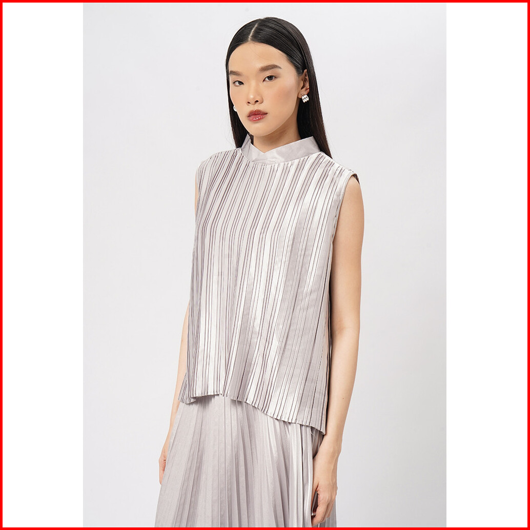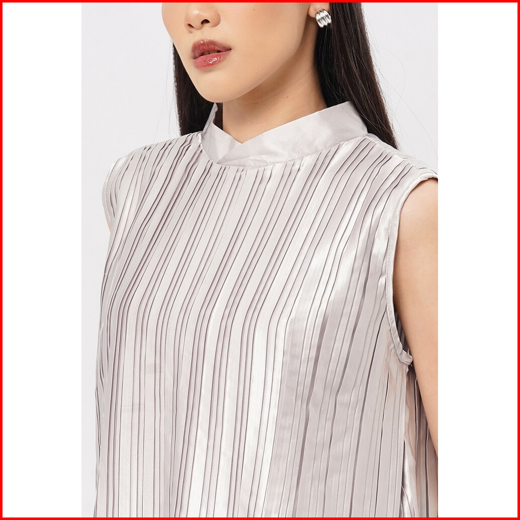 Executive Pleated Sleeveless Top Silver