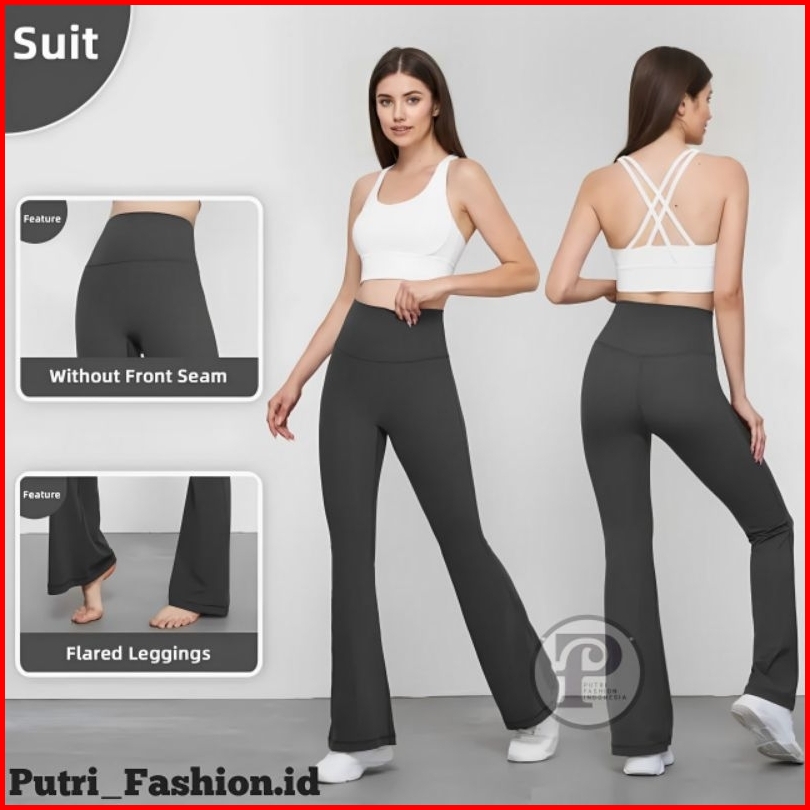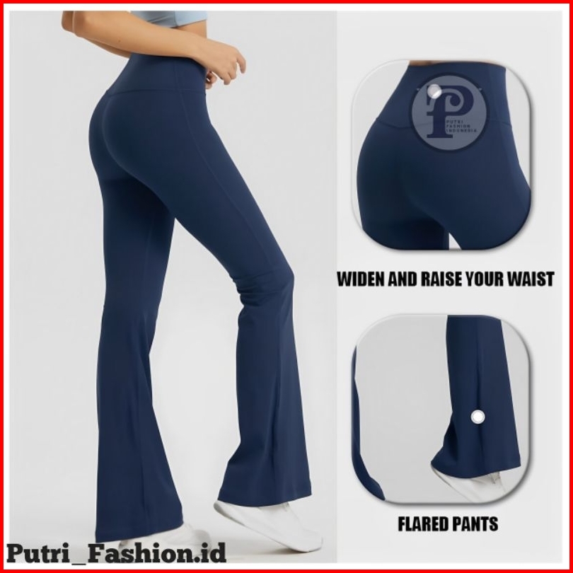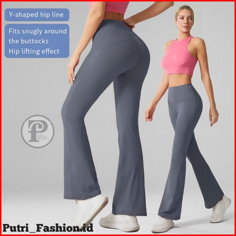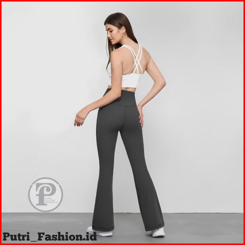 Celana Fit And Flare Pants Cutbray Pinggang Highwaist Bahan Scuba Stretch Melar Elastis Legging Yoga