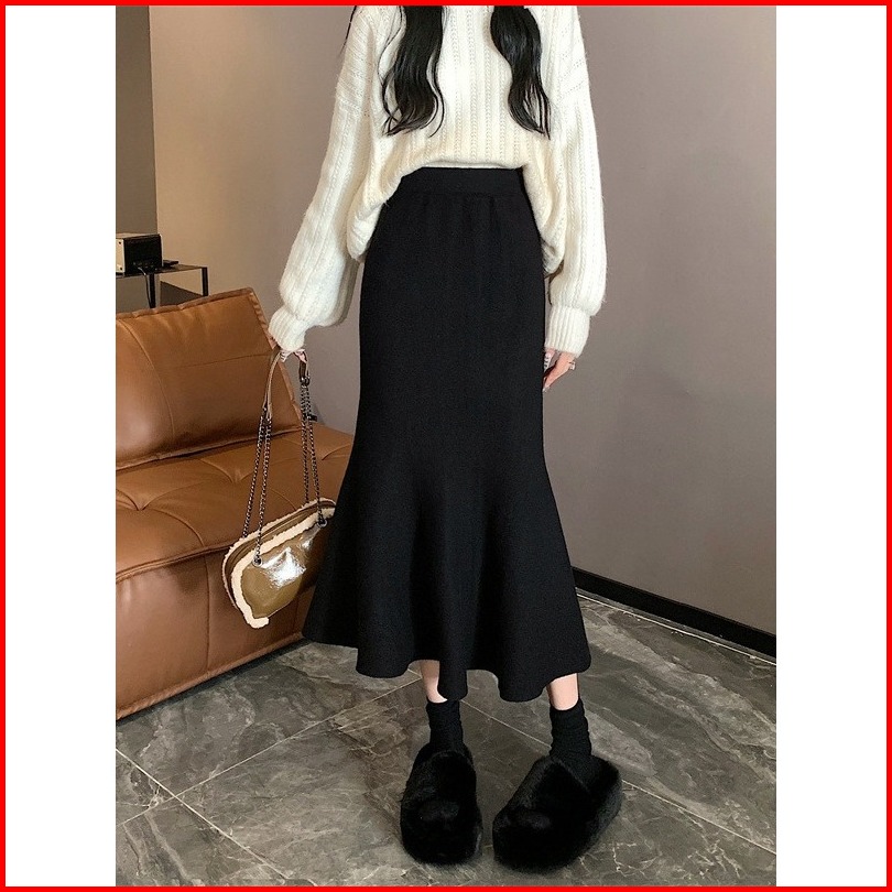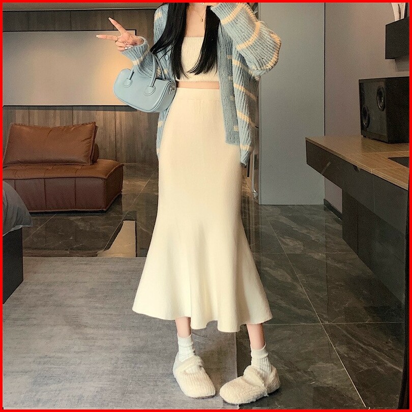 Ajw Rok Wanita Kekinian Duyung Knit Premium Zac Rok Duyung Mermaid Knit Premium Rok Midi Casual Mermaid Knit Premium