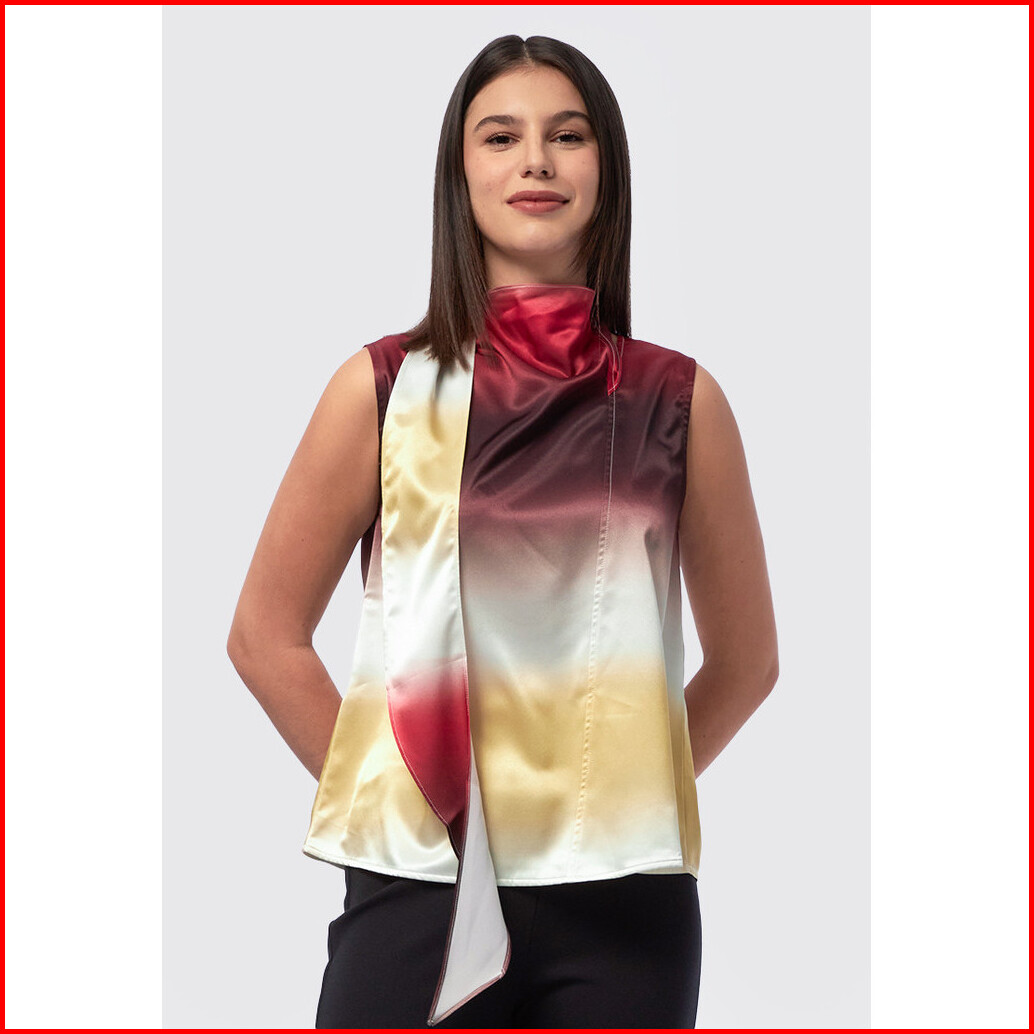 Executive Printed Neck Tie Sleeveless Top Multicolor