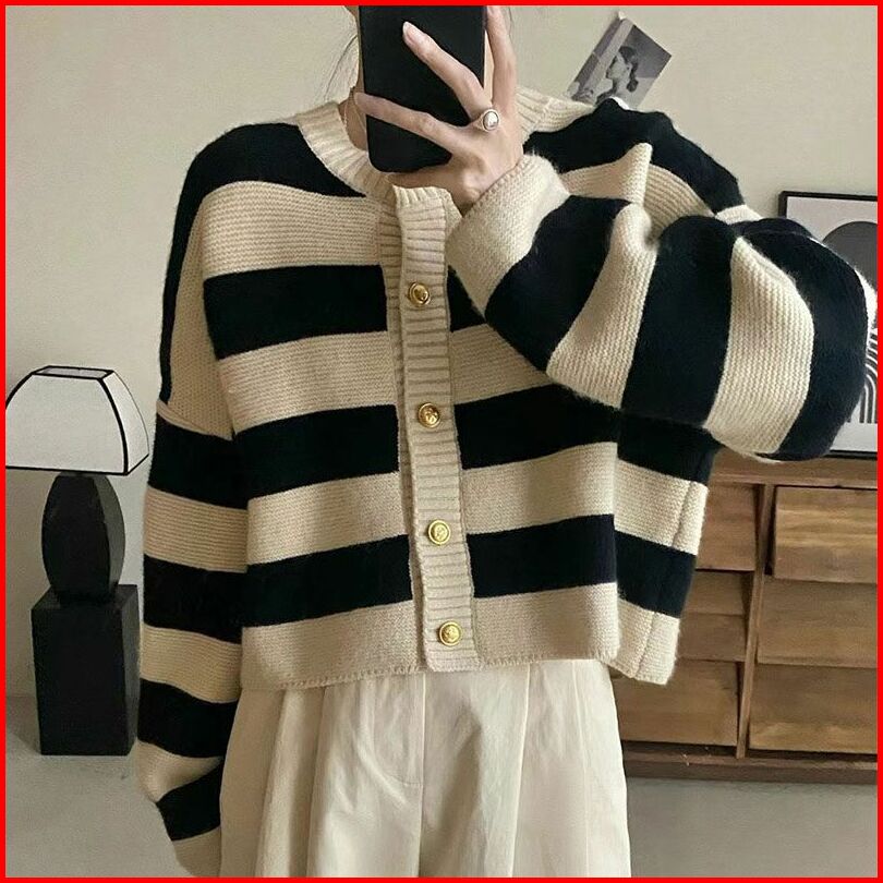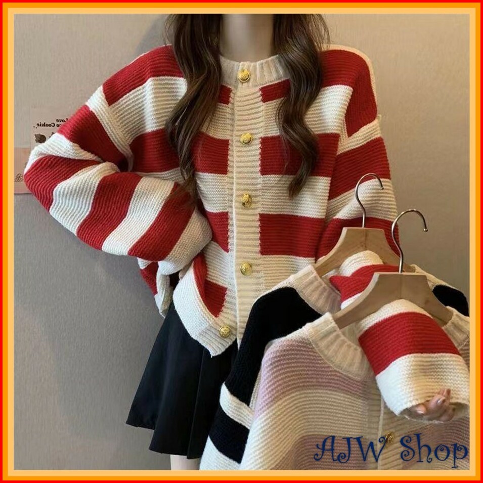 Ajw Cardigan Wanita Rajut Striped Kancing Premium Tebal Wcm Cardigan Wool Striped Kancing Premium Tebal Kardigan Rajut W