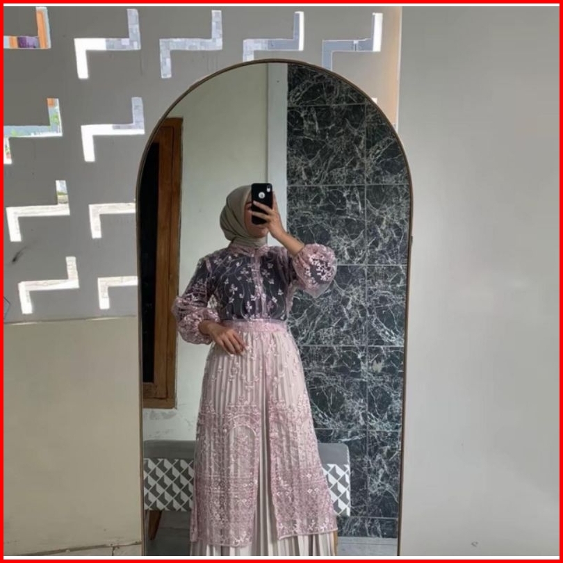 Seda Outer Tunik Tille Brukat Lace Outer Cardigan Tille Brokat Lengan Panjang Kebaya Tunik Atasan Wanita Outher Brukat O