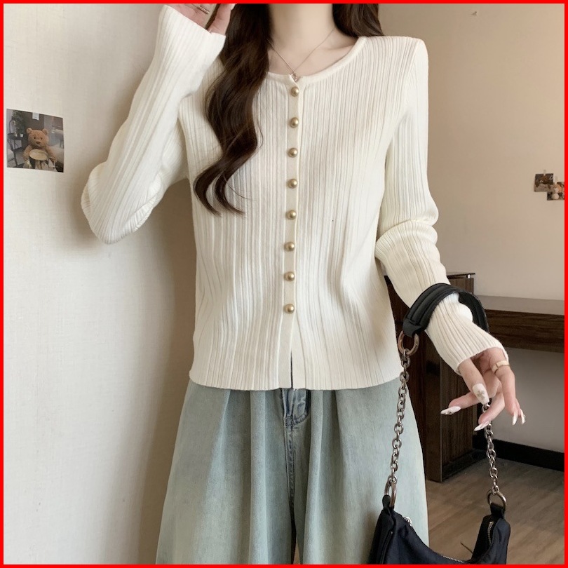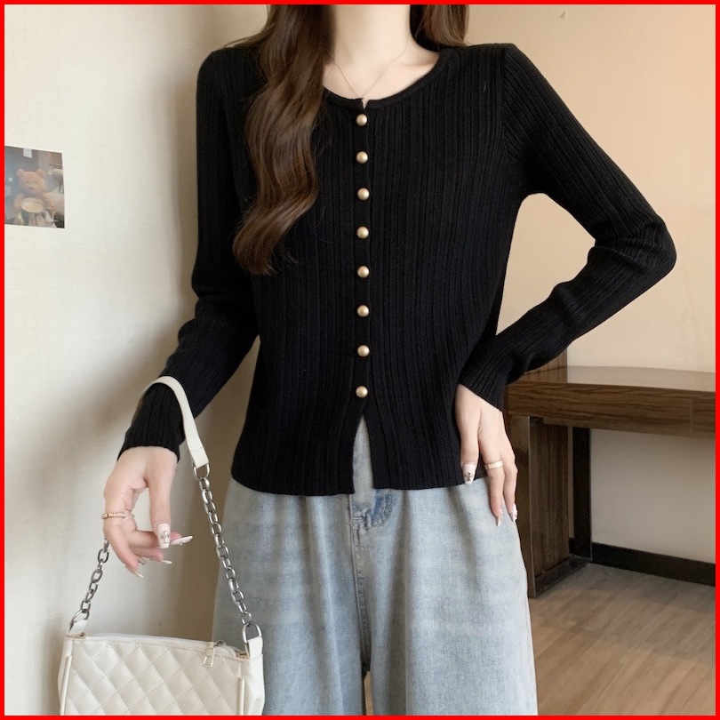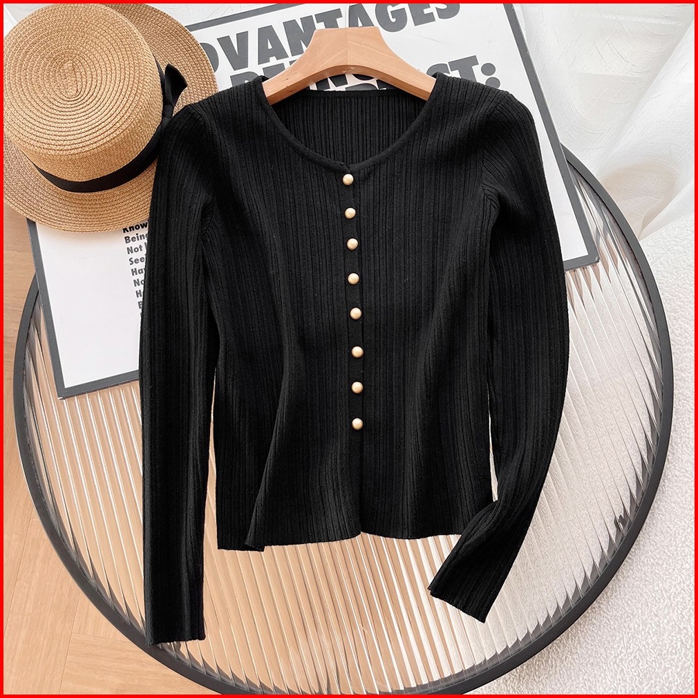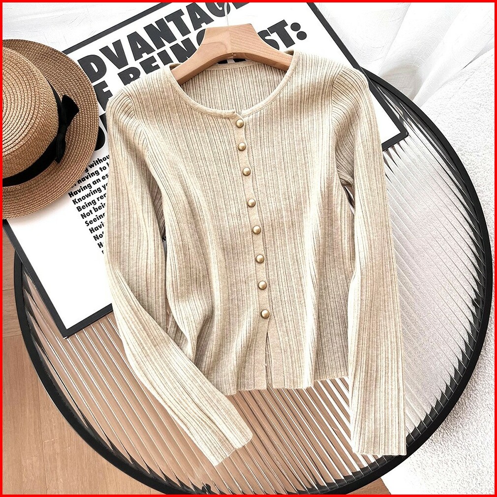 Ajw Atasan Wanita Polos Striped Button Knit Premium Rcz Baju Atasan Wanita Terbaru Striped Polos Kancing Aktif Lengan Pa