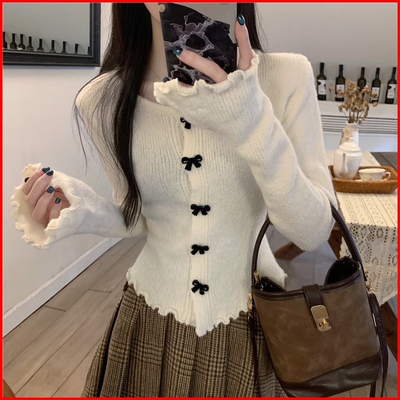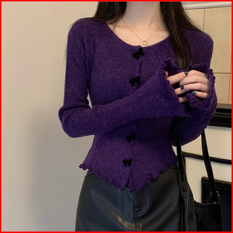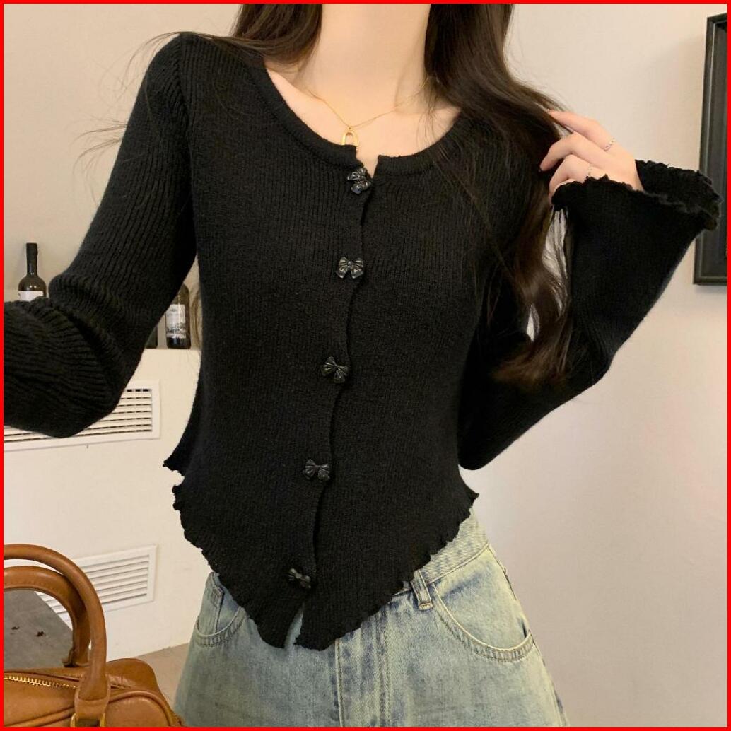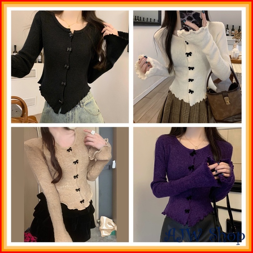 Ajw Cardigan Wanita Crop Oval Kancing Pita Knit Premium Wch Cardigan Crop Top Oval Kriwil Kancing Pita Lengan Panjang At
