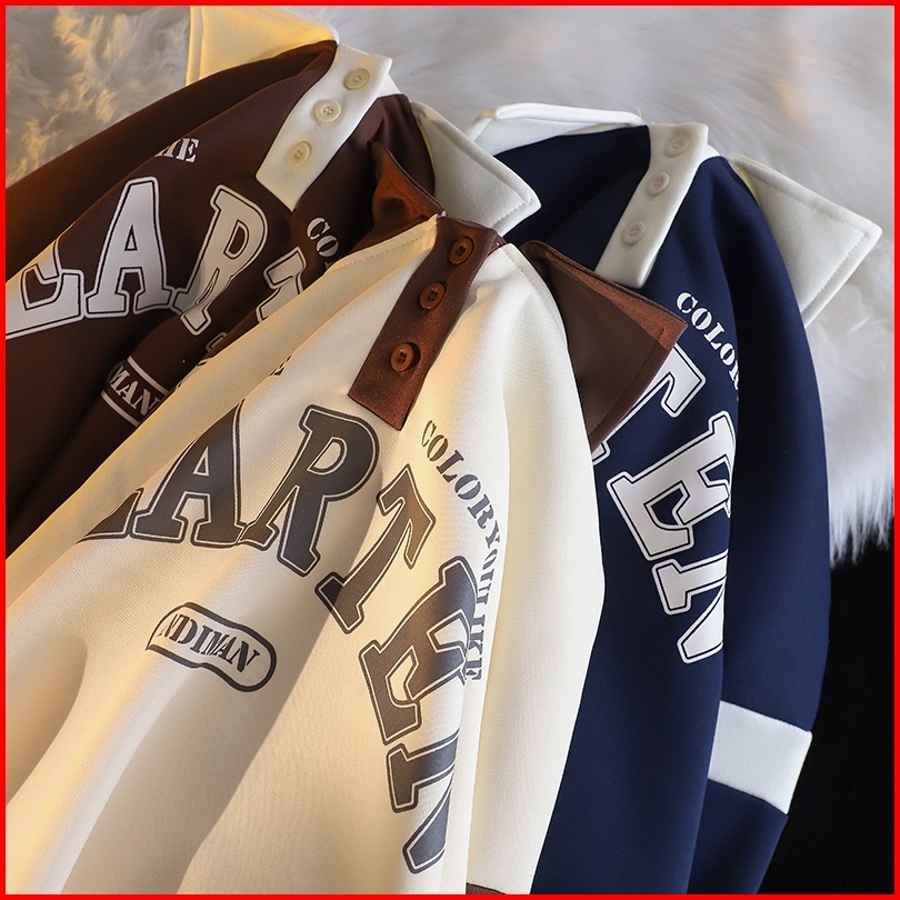 Yuruma American Retro Polo Sweater Vintage Lapel Top All-match College Wind Jacket
