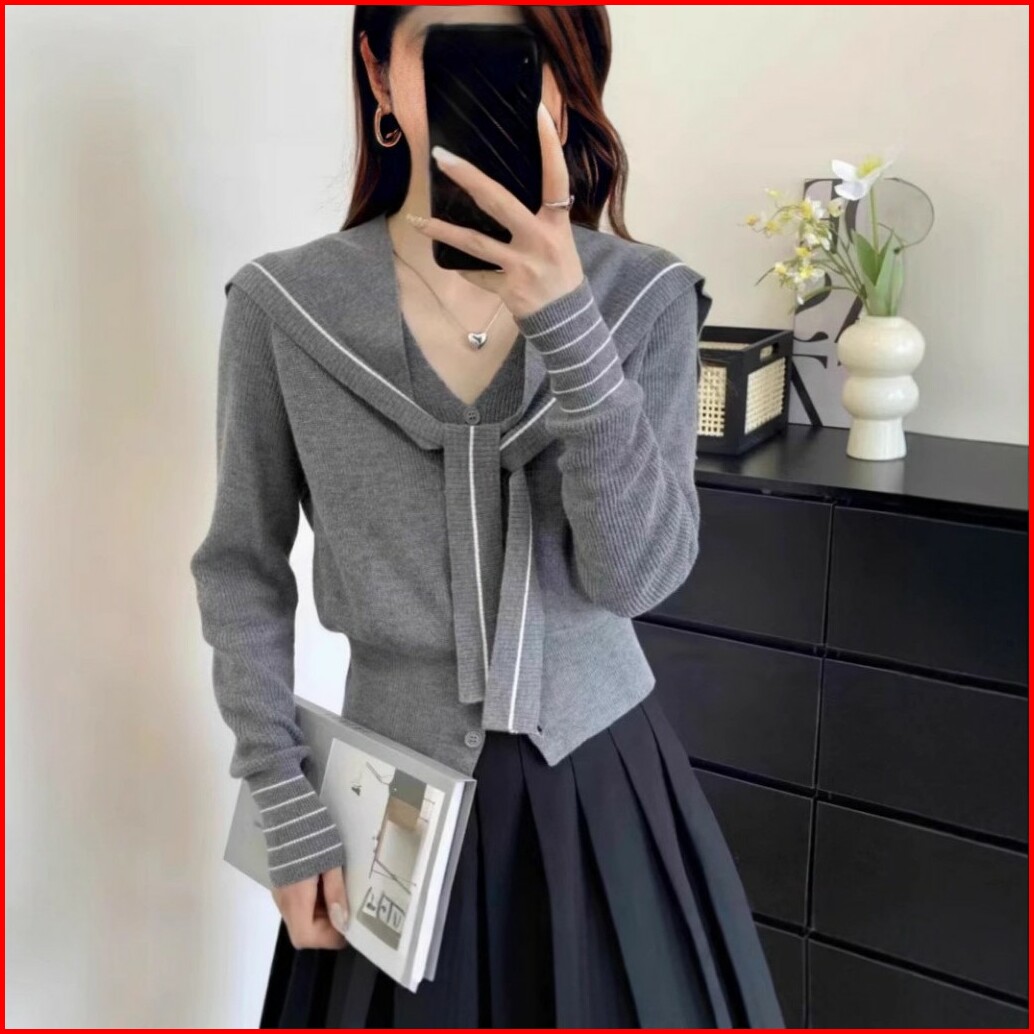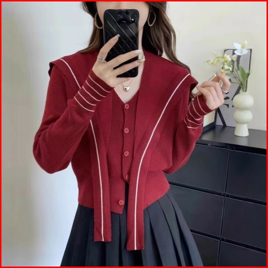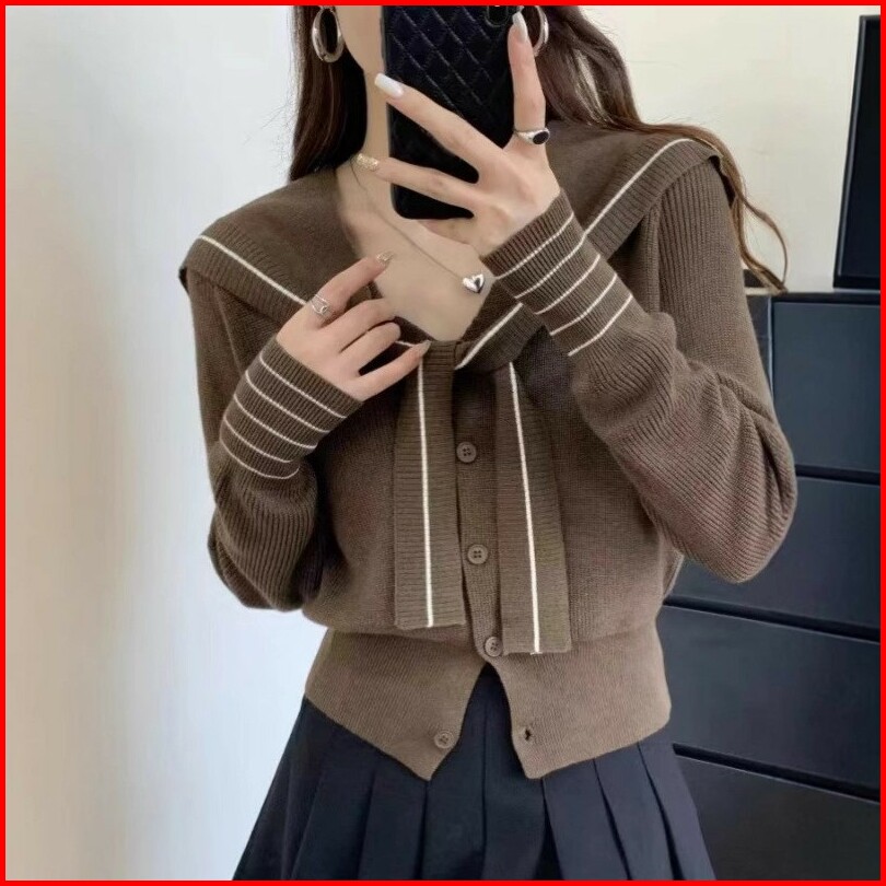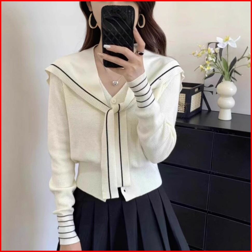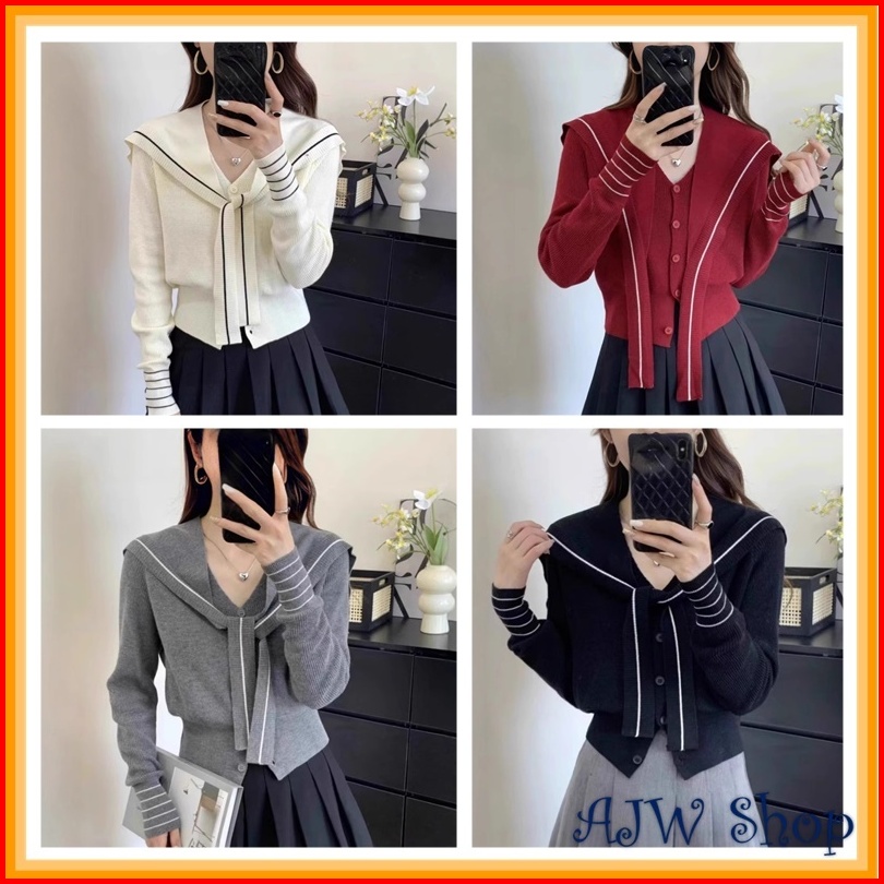 Ajw Atasan Wanita Sailor Shawl List Knit Premium Rue Atasan Wanita Korea Style List Sailor Neck Shawl Knit Kekinan Baju