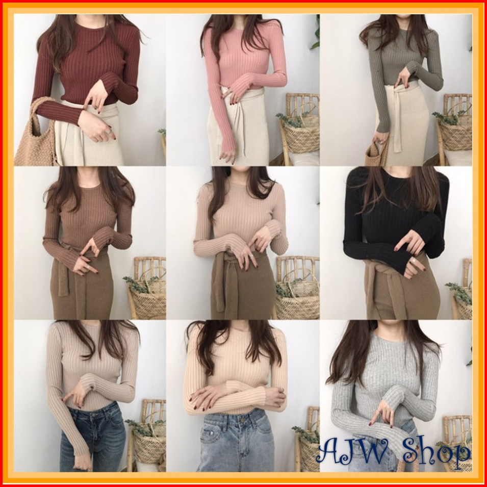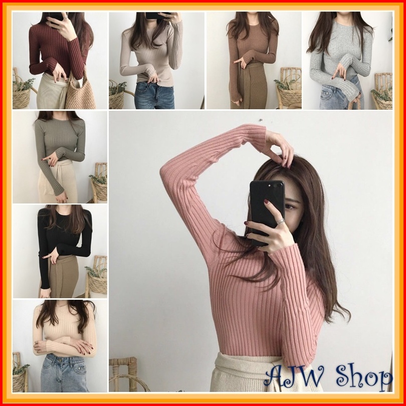 Ajw Atasan Rajut Wanita Oneck Import Premium Lengan Panjang Adem Aa Inner Rajut Oneck Kerah Bulat