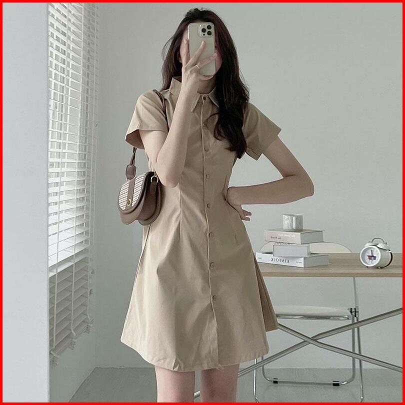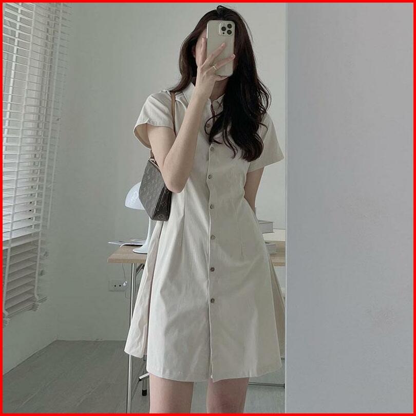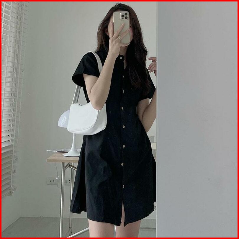 Ajw Dress Kemeja Cotton Rayon Berkerah Kancing Full Lengan Pendek Sbh Casual Dress Mini Shirt Kemeja Full Kancing Lengan