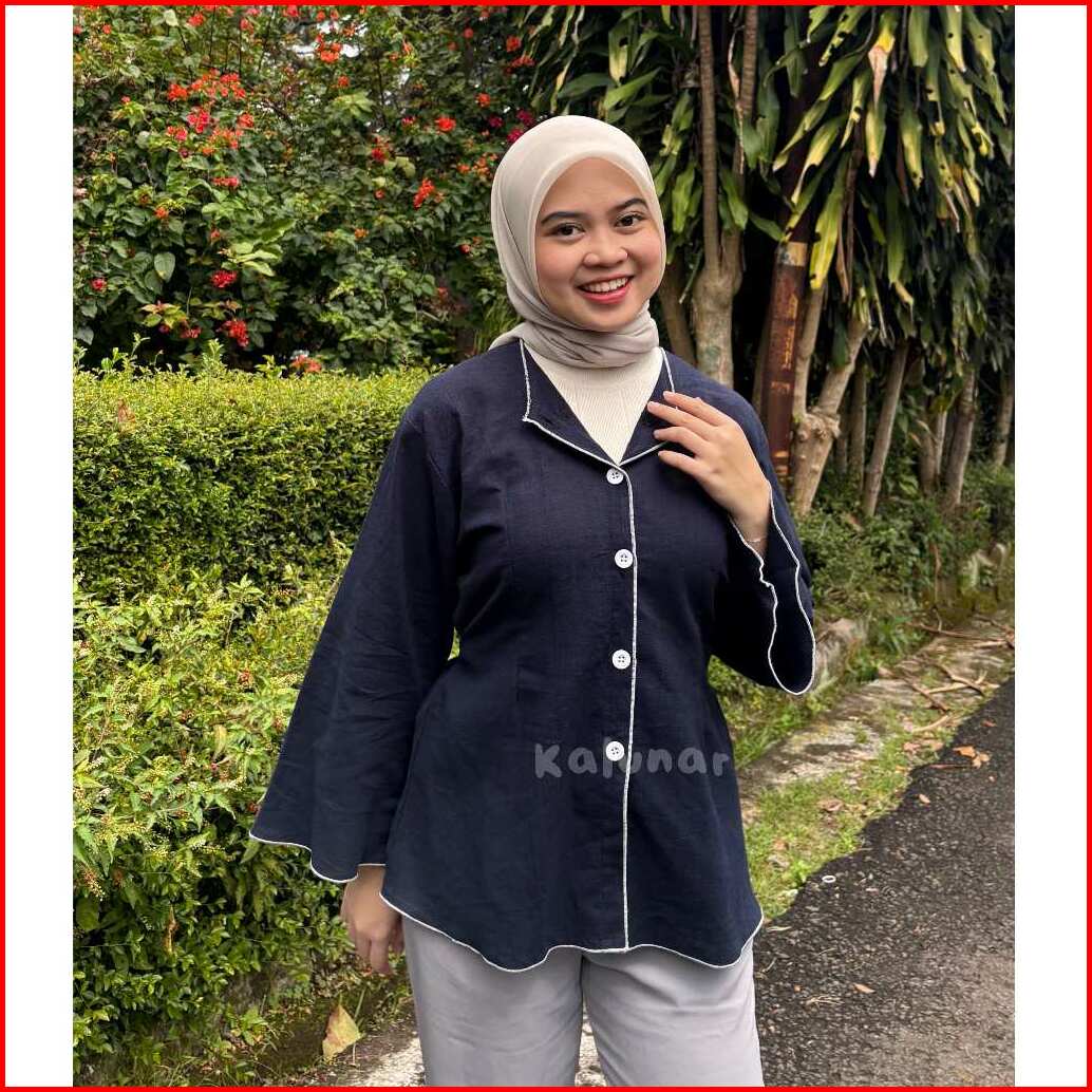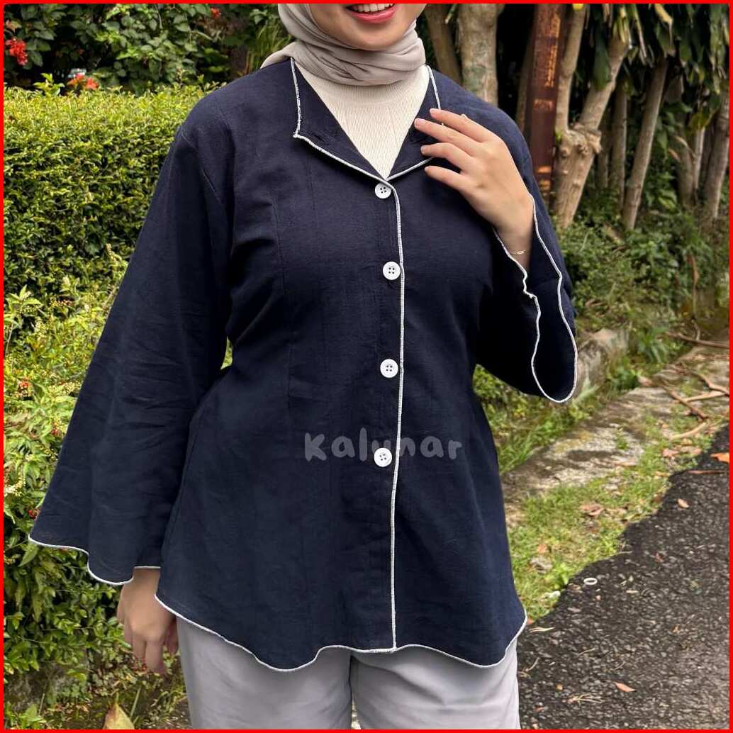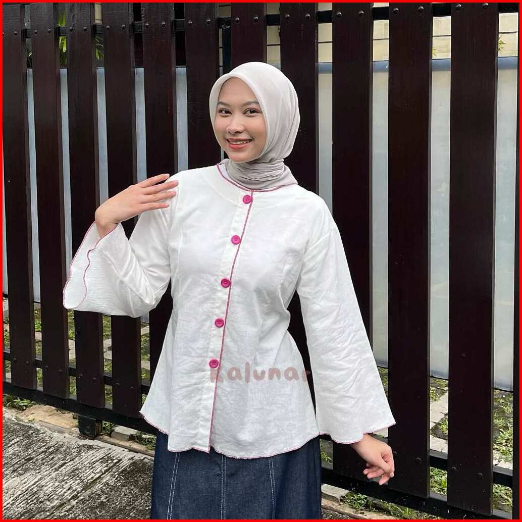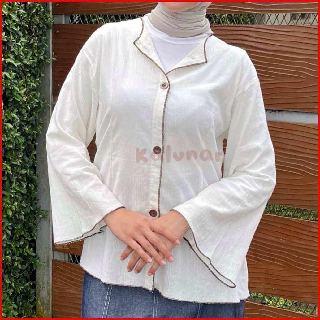 New Launch Kalunar - Alice Shirt Atasan Kemeja Linen Korean Blouse Outline Wanita