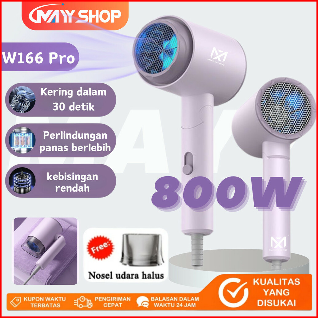 Mayy Hair Dryer Low Watt 800w Lipat 90 Portable Hairdrayer Pengering Rambut Negative Lon 3 Tingkat Suhu Cepat Kering