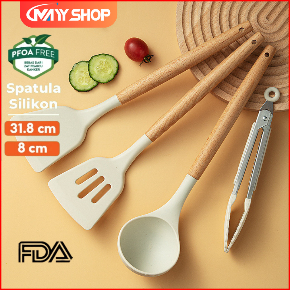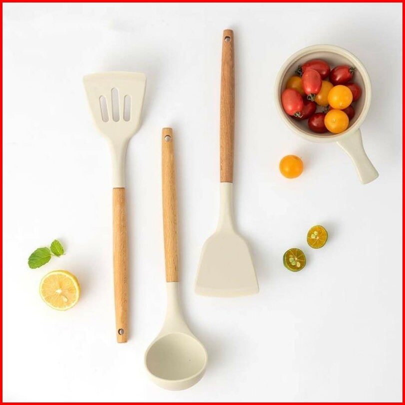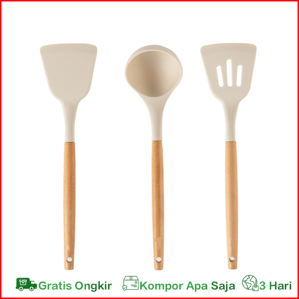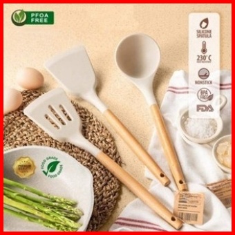 Sendok Sup Set Spatula Silikon Tahan Panas Warna Putih