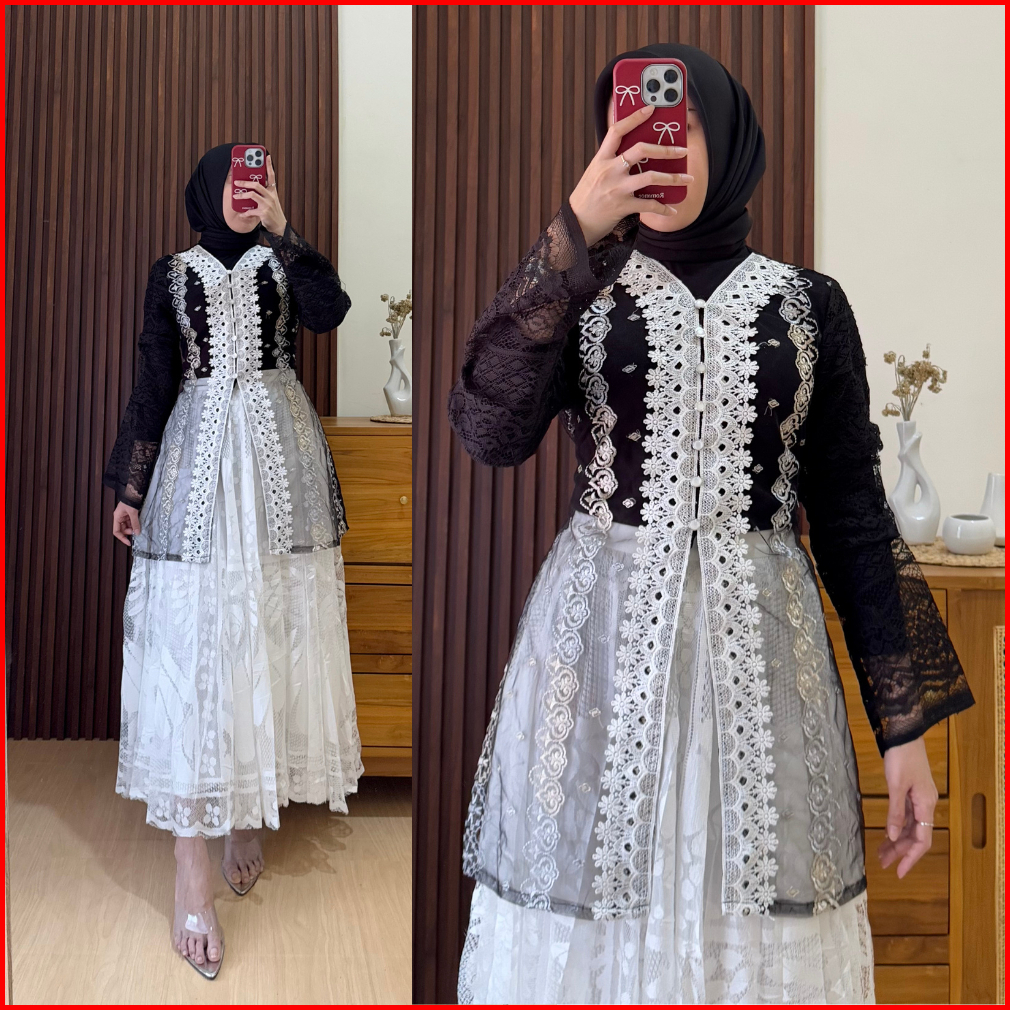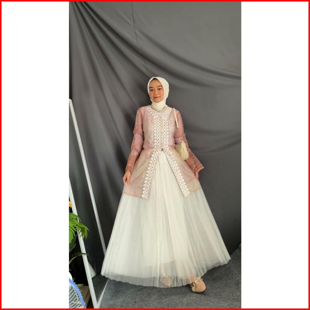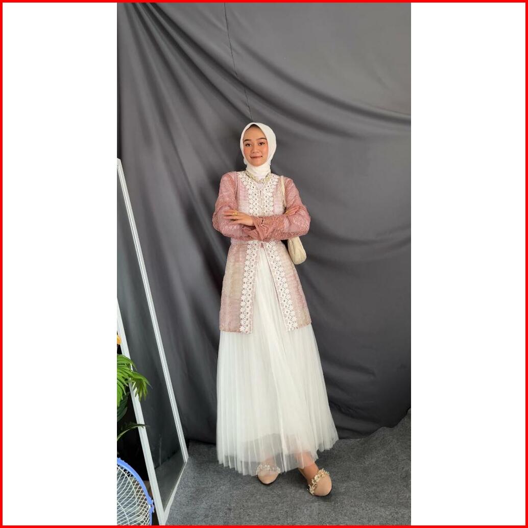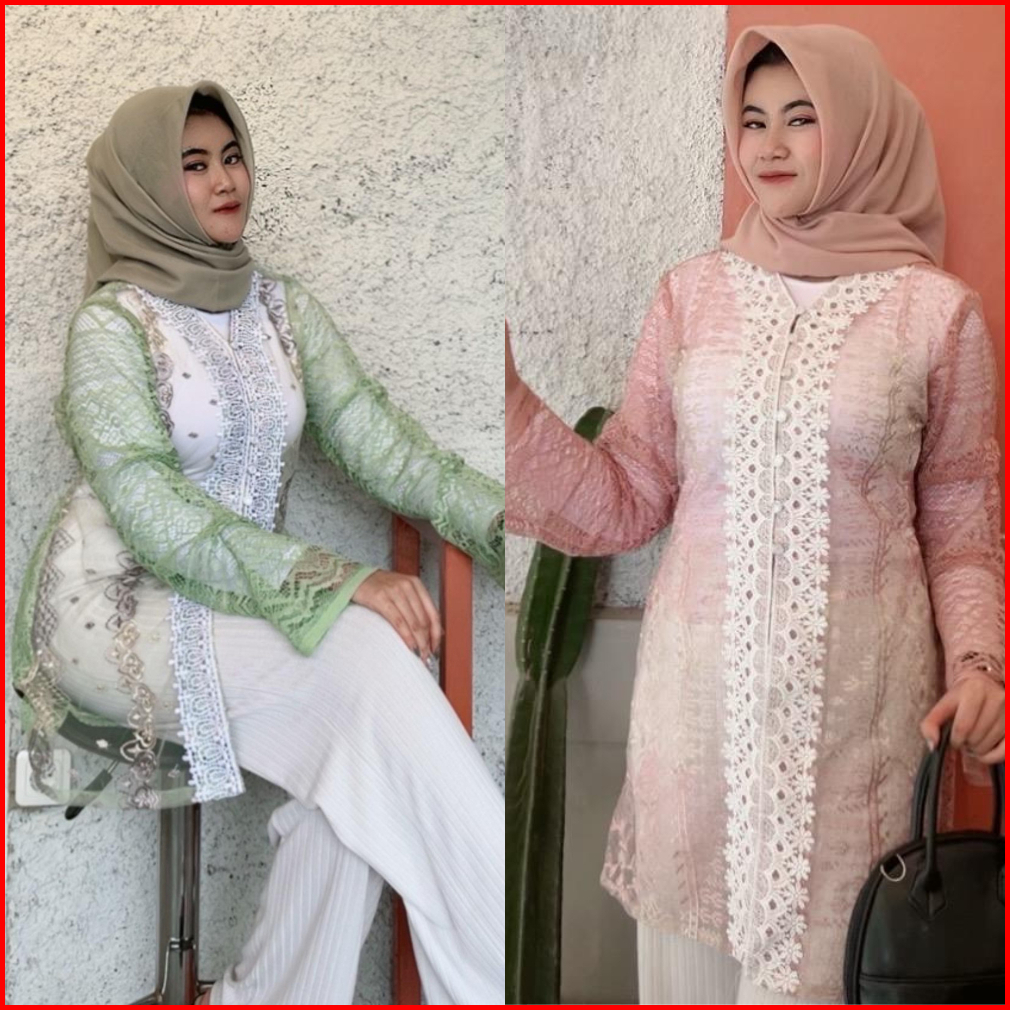 Enzy Outer Wanita Kekinian Tulle Gardenia Warna Mix Renda Full Chantily Halus Setelan Inner Outer Kebaya Wisuda Modern O