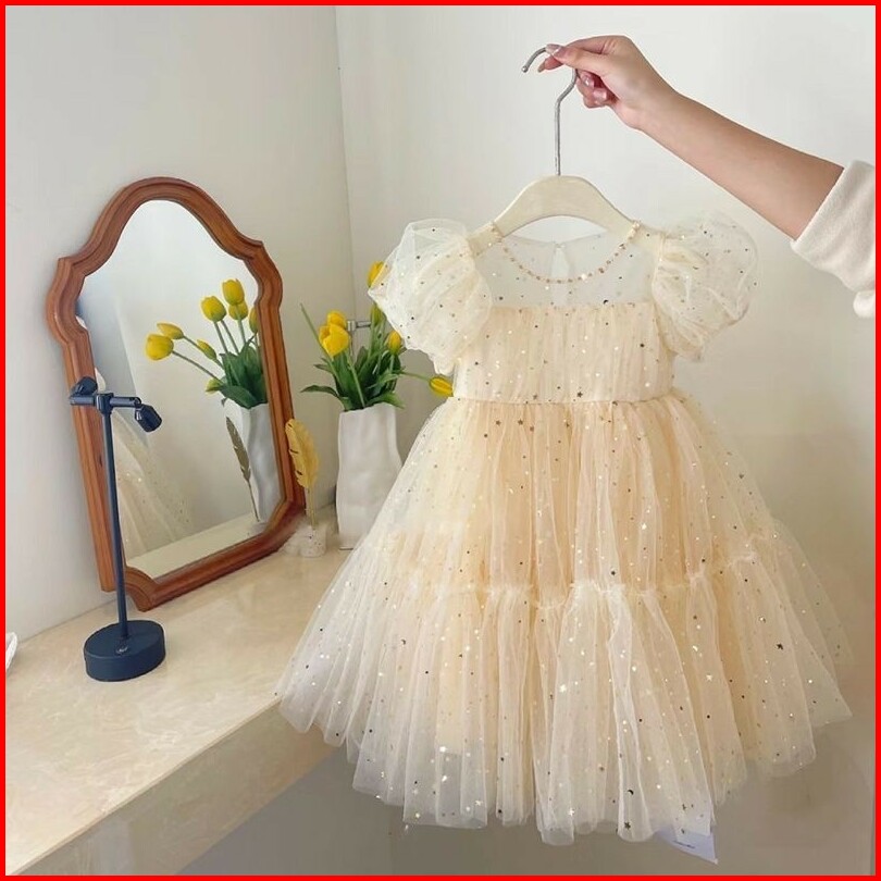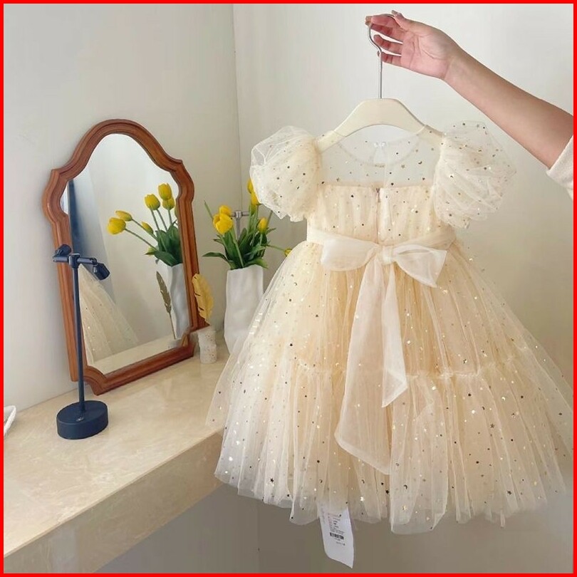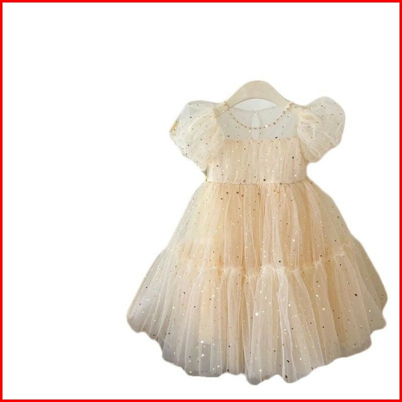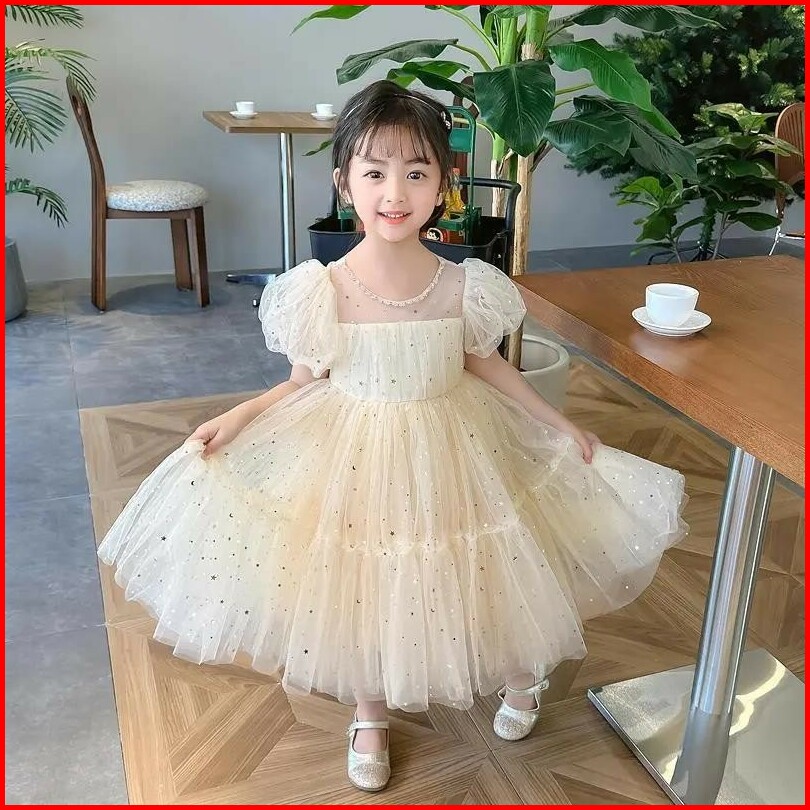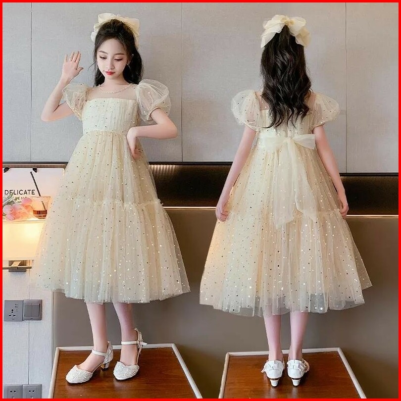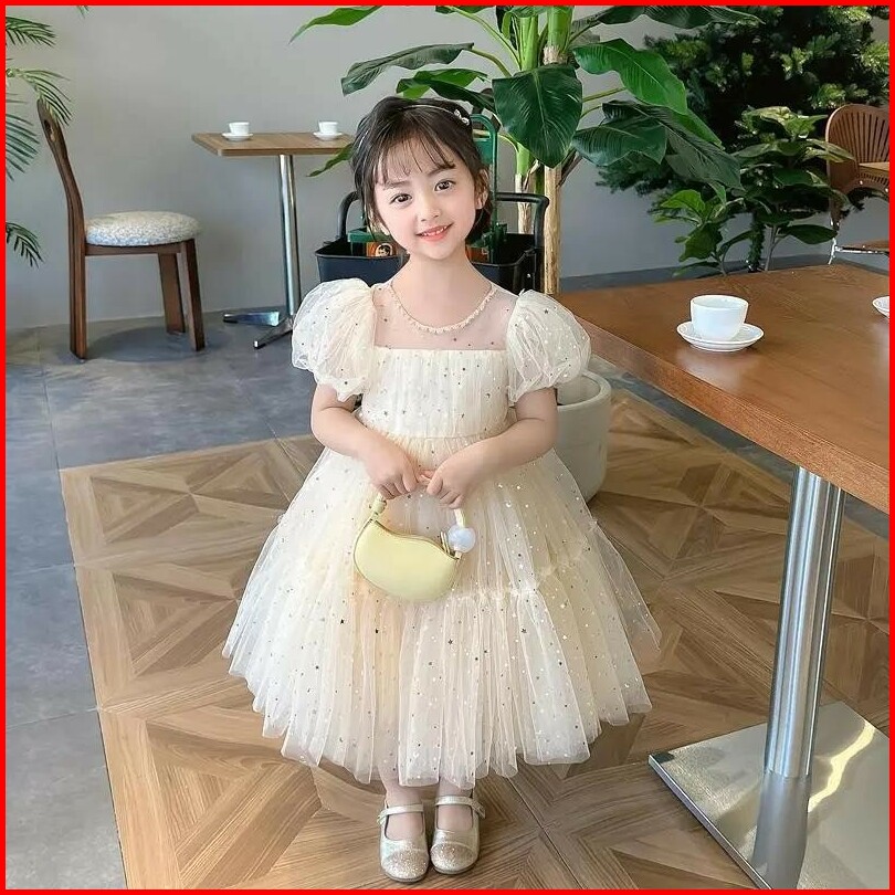 Haasya Kids Gaun Untuk Anak Perempuan Usia 1-7 Tahun Musim Panas Gaya Baru Anak-anak Rok Payet Lengan Puff Gaun Putri Te