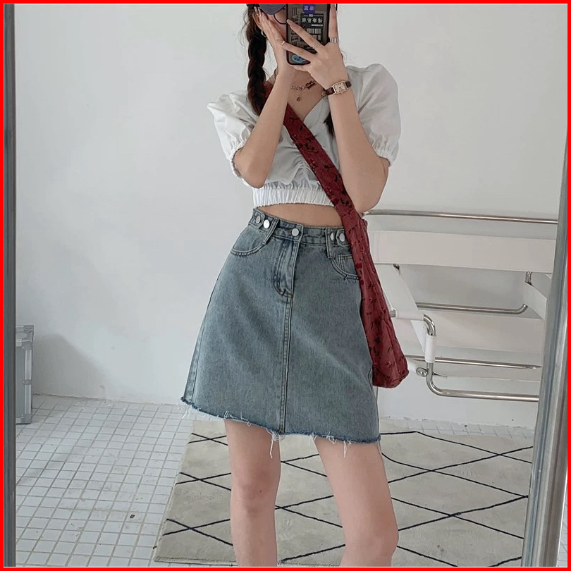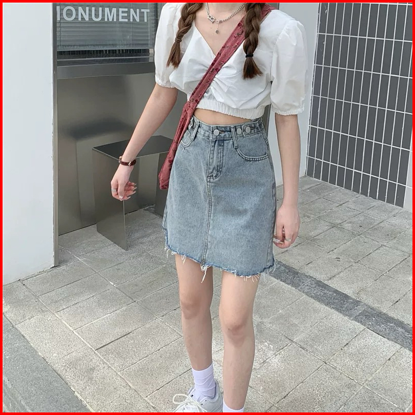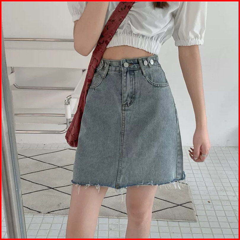 Beevalue Rok Denim Wanita Highwaist Mini Skirt Rok Jeans Wanita Tinggi Pinggang Bahan Premium Model Korea 613