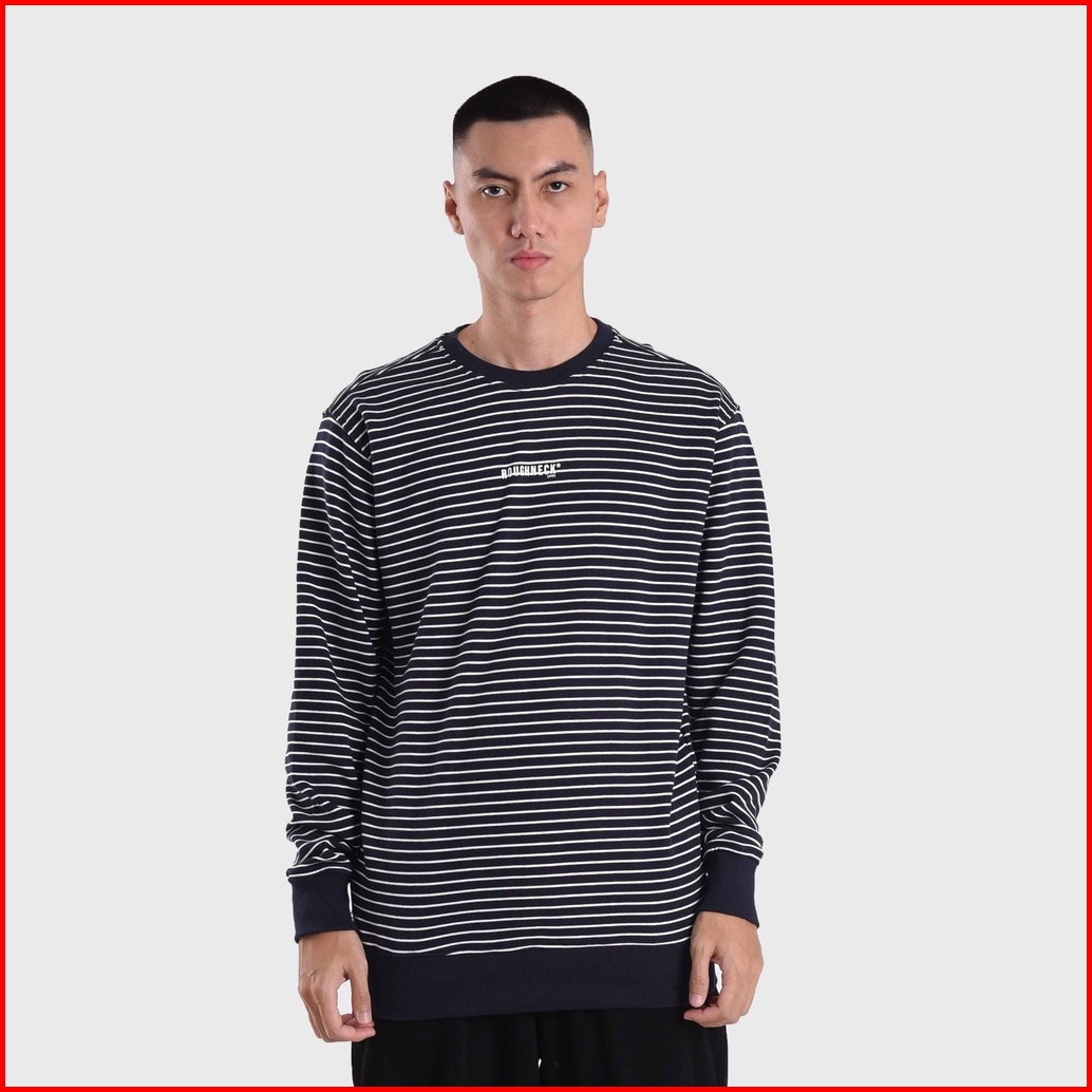 Roughneck Ss442 Navy Stripe Mini Sig White Crewneck