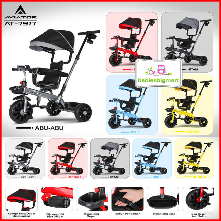 Sepeda Anak Roda 3 Tiga Tricycle Aviator At 7917 Musik Kursi Putar Ada Musik Lampu