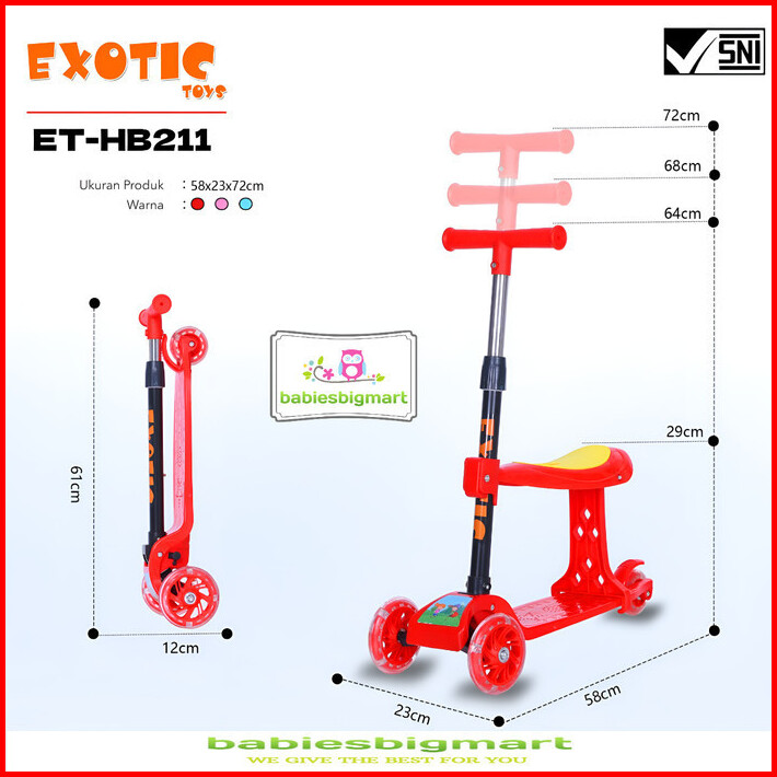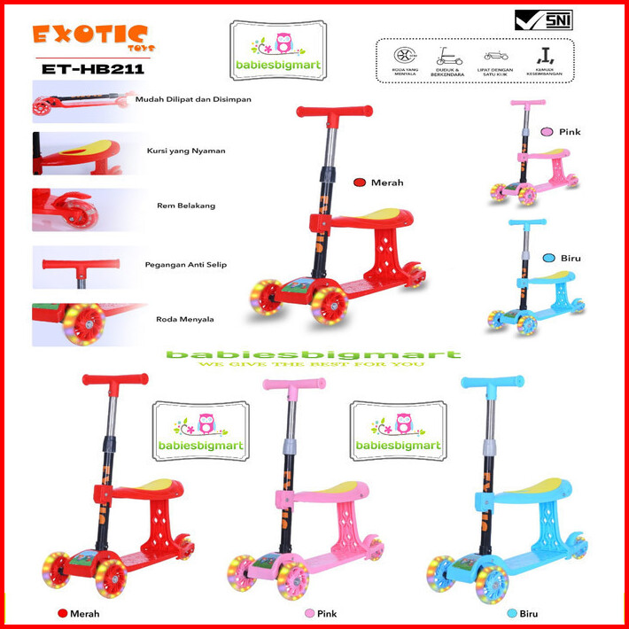 Scooter Anak Roda 3 Exotic Et Hb 211 Bisa Berdiri Dan Duduk 2 In 1 Sekuter Skuter Hb211