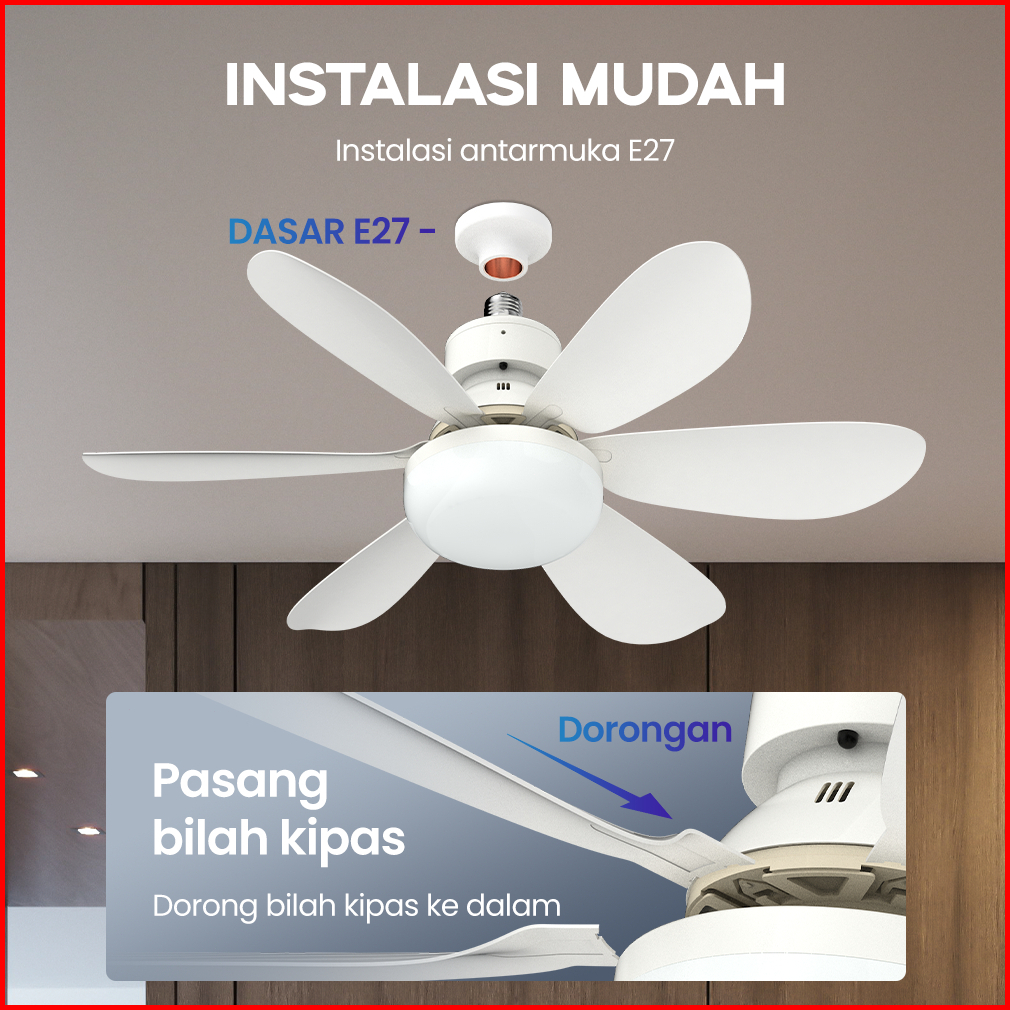 Han River 52cm Kipas Angin Plafon 40w 2in1 Lampu Kipas Angin Led E27 Multifungsi Dengan Peredupan Remote Control