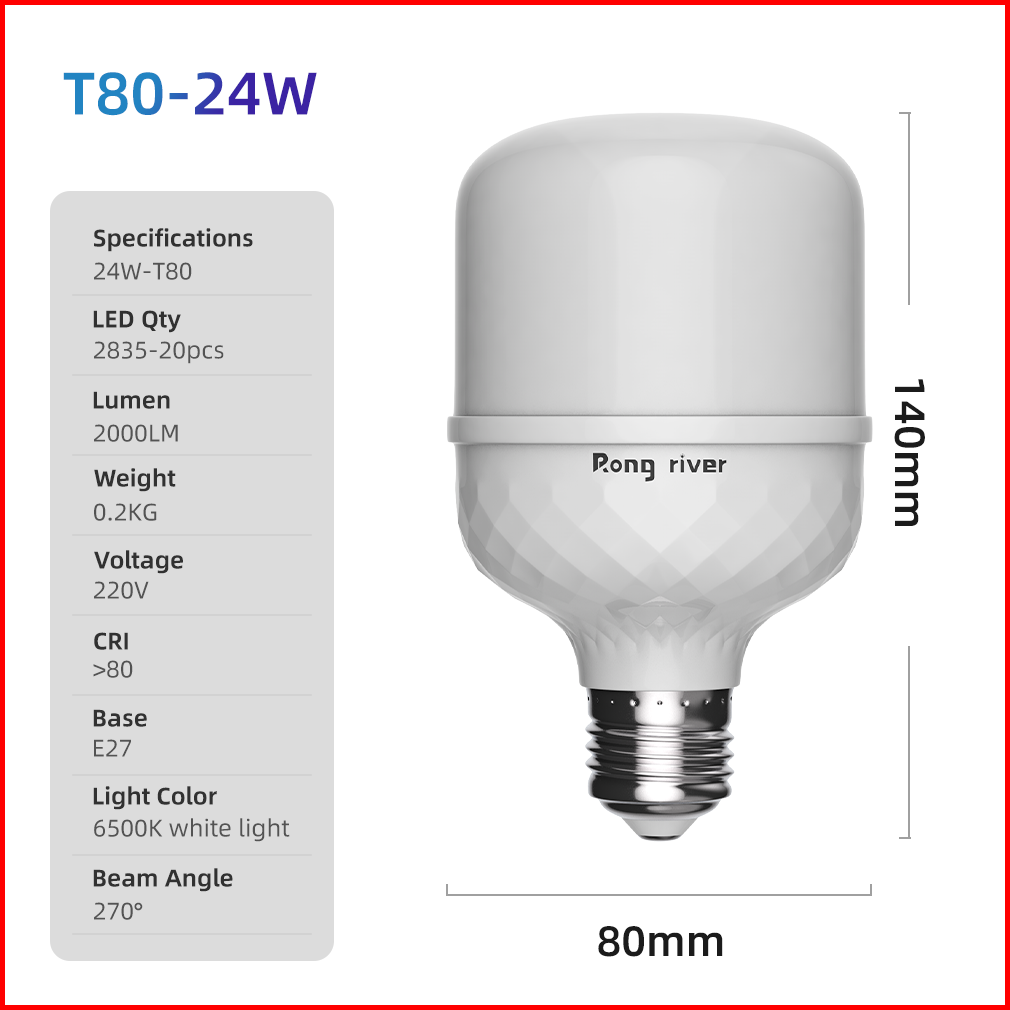 Rong River 3buah 24watt Lampu Led Bohlam Cahaya Putih 6500k Bohlam Led