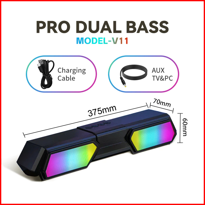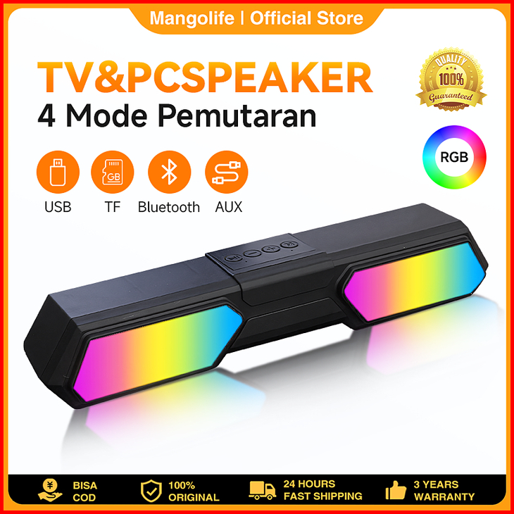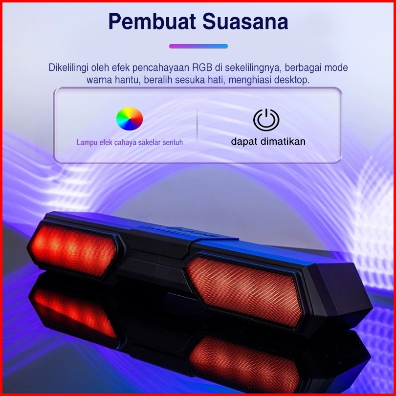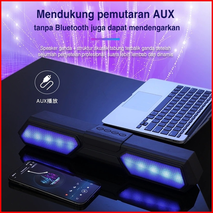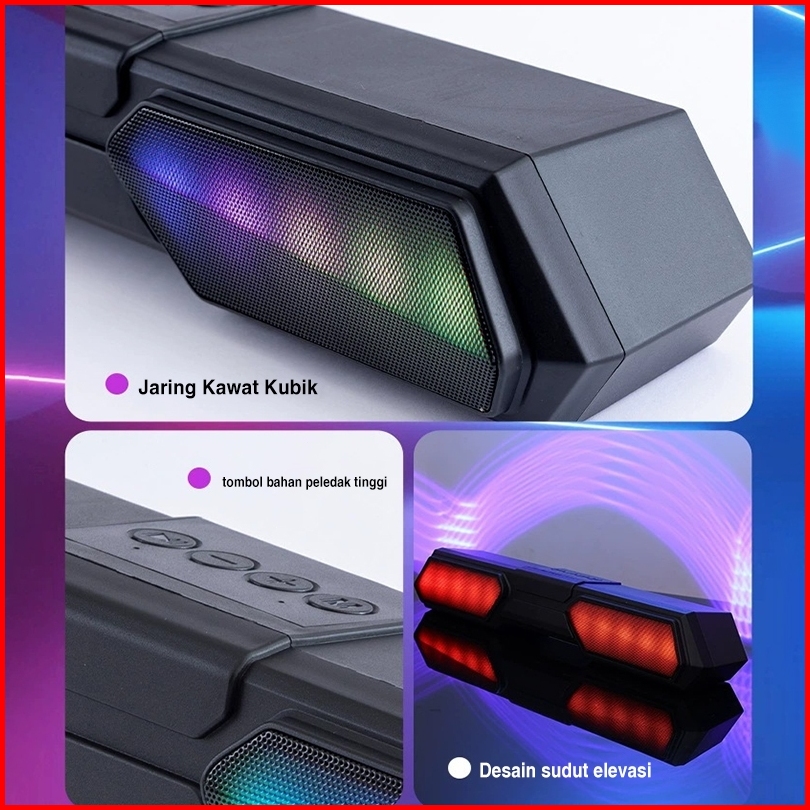 Speaker Bluetooth Soundbar Bass Super Untuk Tv Pc Laptop Gaming - Wireless Mini Portable Rgb Led Hi-fi Fm Tf Aux Garansi