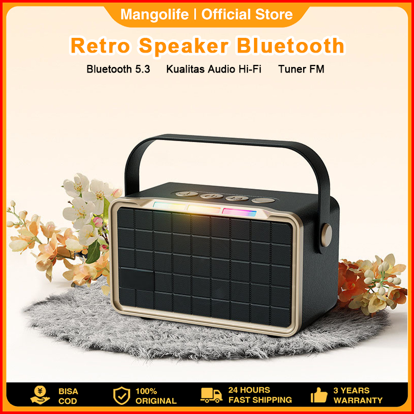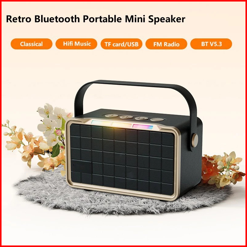 Speaker Bluetooth Bergaya Retro Mini Portabel Dengan Slot Memori Tuner Fm Dan Konektivitas Nirkabel Untuk Pc Serta Speak