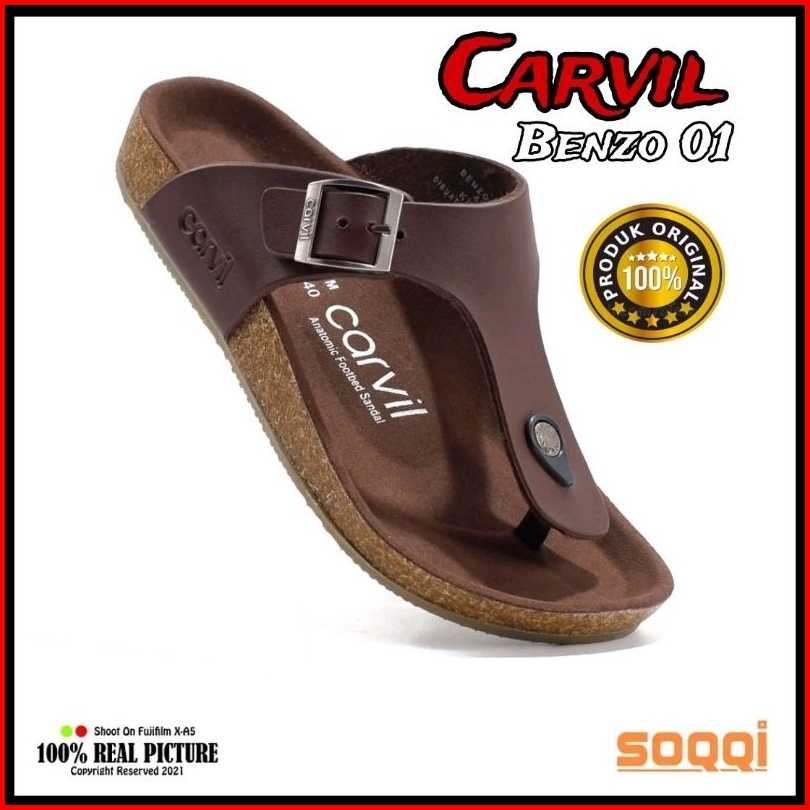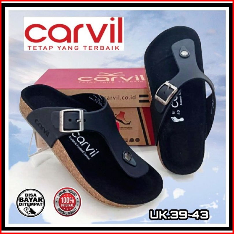 Sendal Carvil Pria Original Sandal Jepit Cowok Carvil Benzo 01 Casual Hitam Size 39 S D 44 Murah Premium - Black