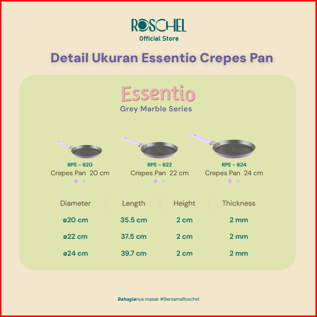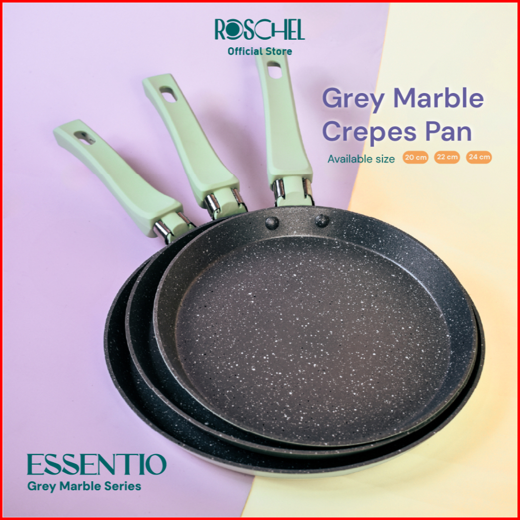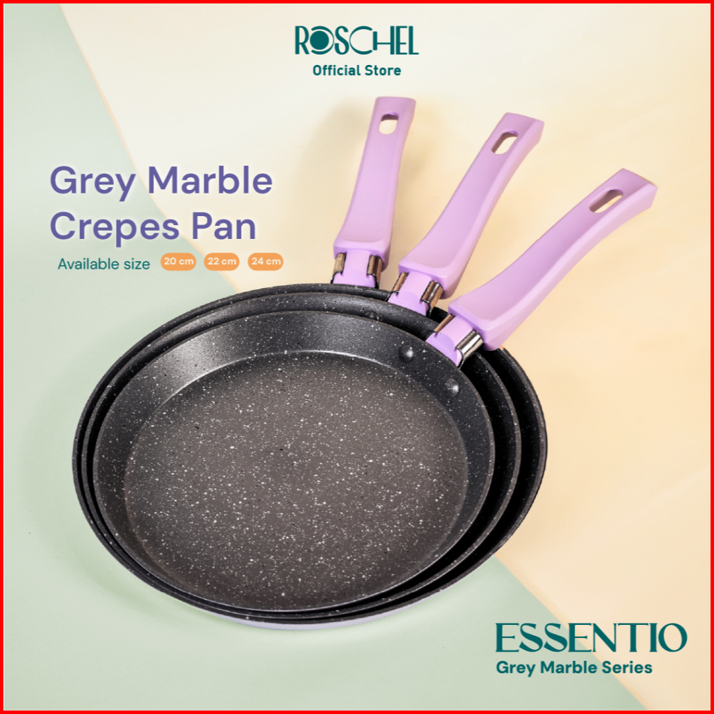 Roschel Essentio Marble Non-stick Crepes Pan Crepes Maker Penggorengan Wajan Kulit Crepes Anti Lengket 20 22 24 Cm