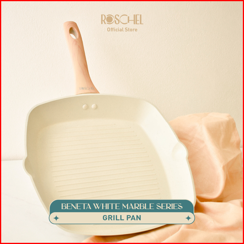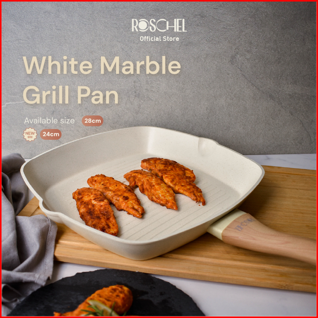 Roschel Beneta White Marble Coating Non-stick Grill Pan 24 28 Cm Panci Panggang Wajan Penggorengan Fry Pan Pemanggang Bb