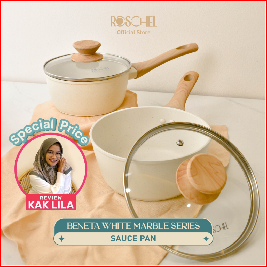 Limited Offer Special Lila.azmina Roschel Beneta White Marble Coating Non-stick Saucepan 16 18 Cm Tutup Kaca Panci Susu